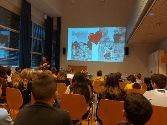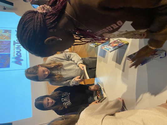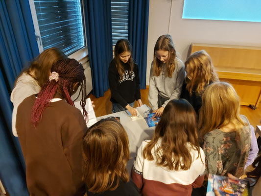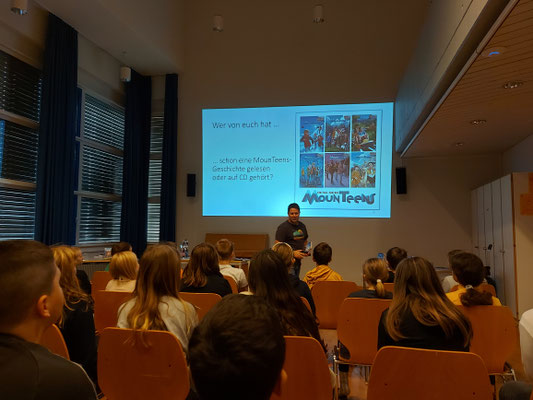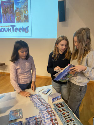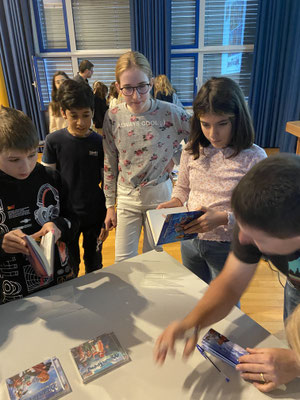 Marcel Naas hat der Schule die 6 Bände der Mounteens signiert. Diese gehen zuerst in die Klassen, bevor sie dann zur Ausleihe in der Schul- und Gemeindebibliothek zur Verfügung stehen.