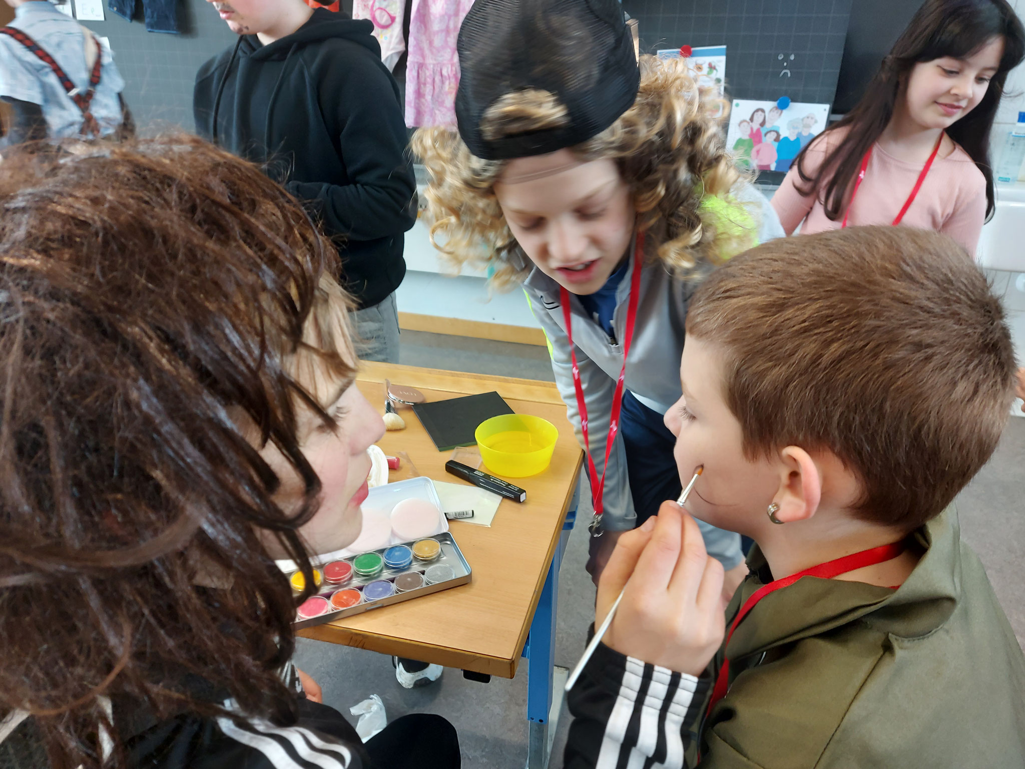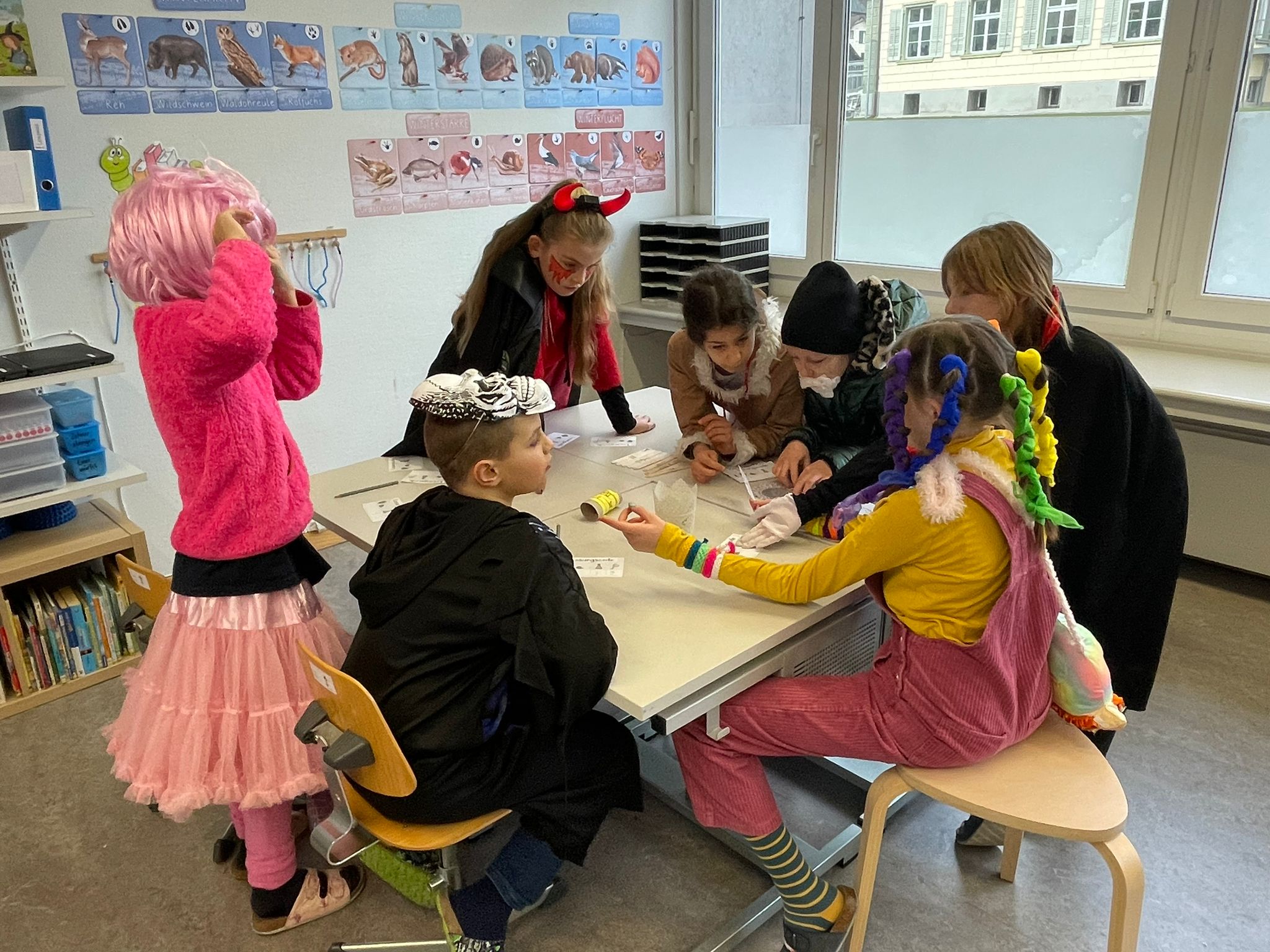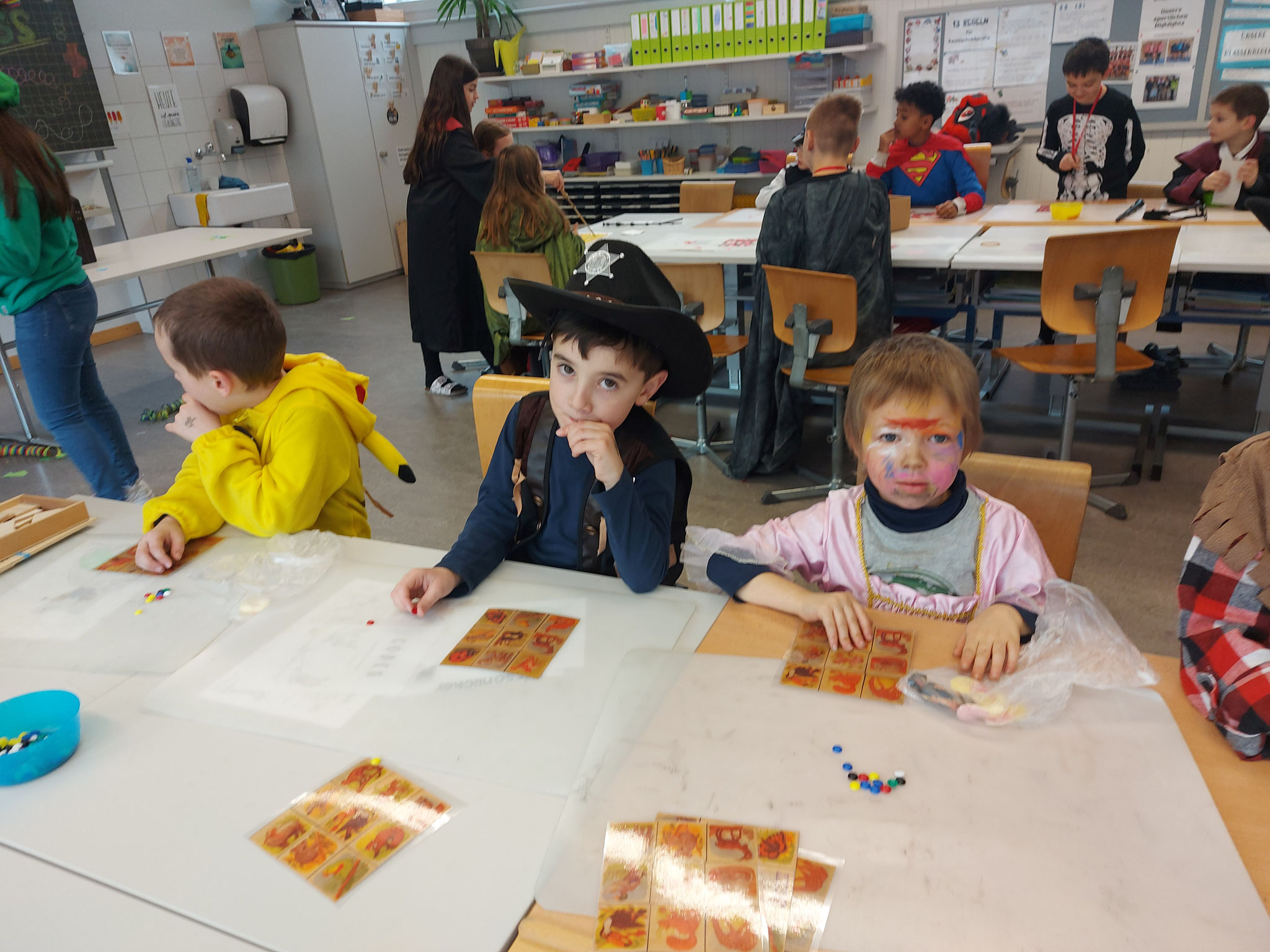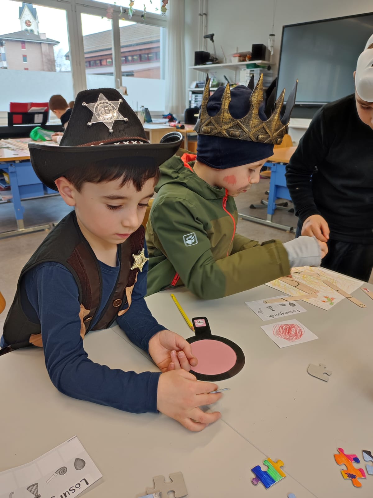 Miteinander richteten die Klassen die verschiedenen Ateliers in der ersten Lektion ein. In den Schulfamilien gab es ein Foto und die Standorte der Ateliers konnten besucht werden. Danach startete der Atelierbetrieb wie Lotto, Wühlkiste, Disco, Armbrustschiessen, Bobbycar-Rennen, Montagsmaler, Kuchen- und Getränkebar, Büchsenwerfen, Schoggispiel, Escape-Rätsel und Schminken. Süsse Preise gab es zu gewinnen.