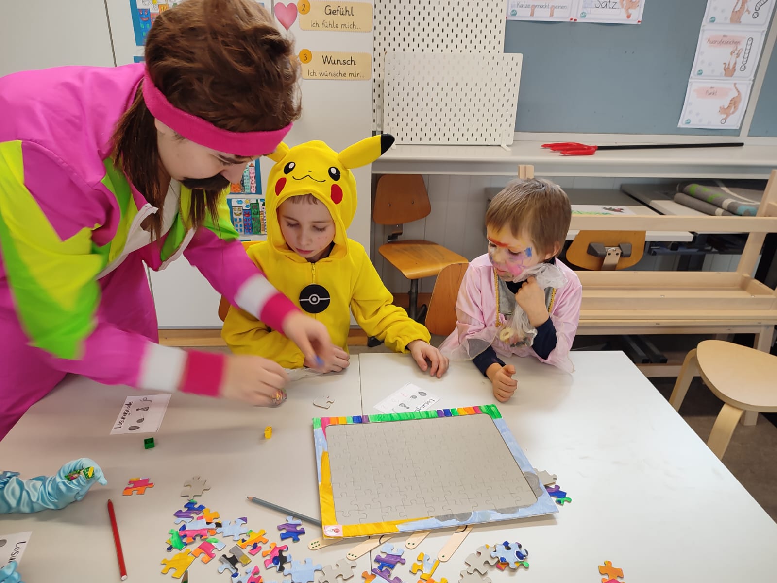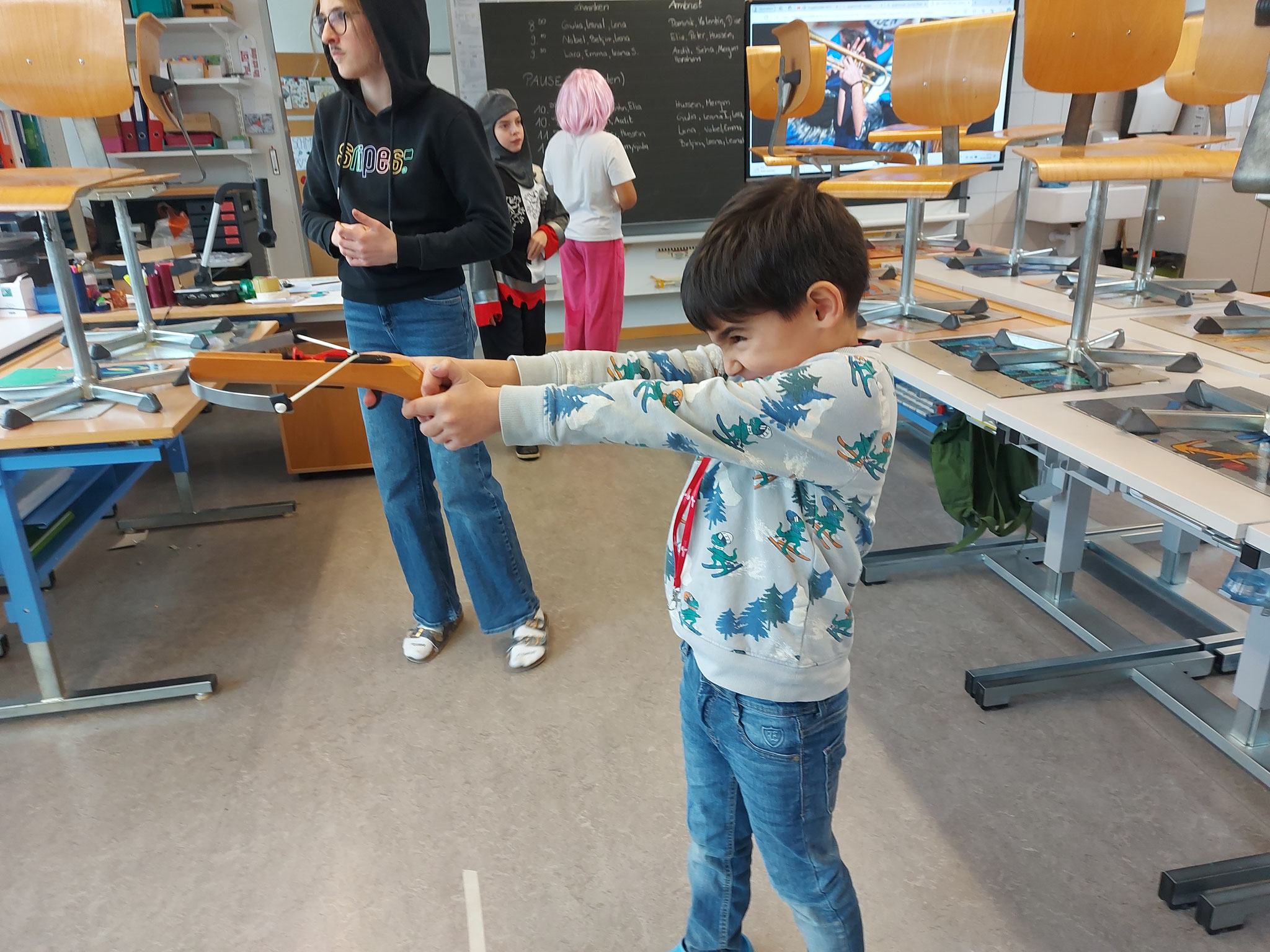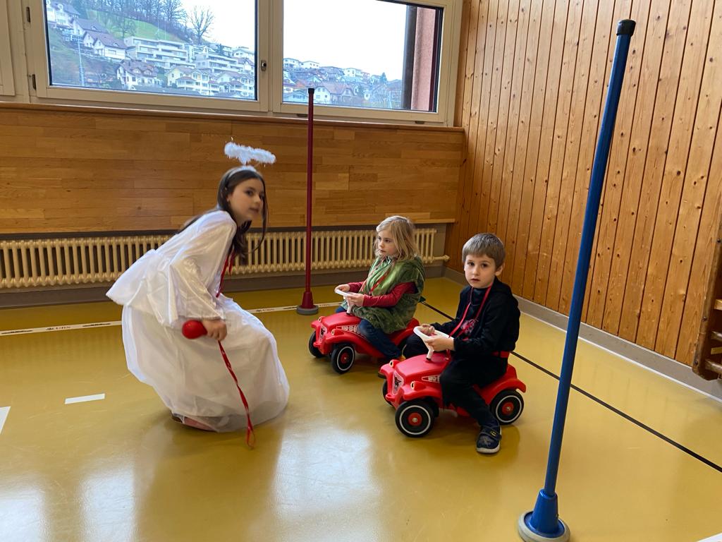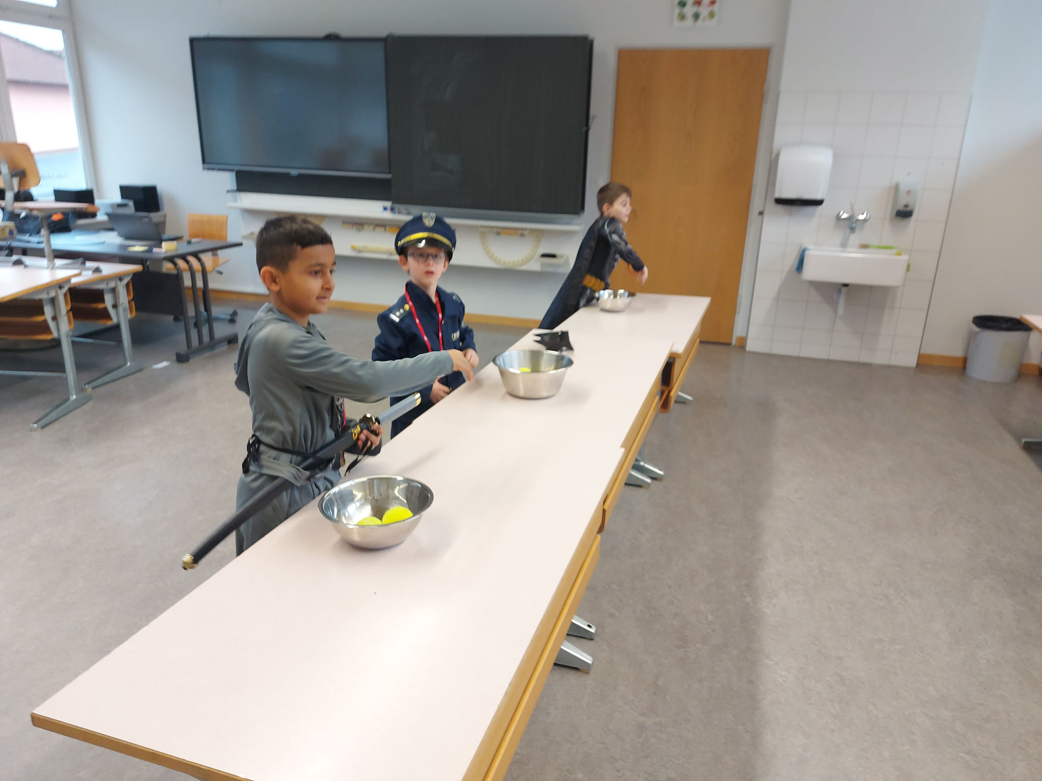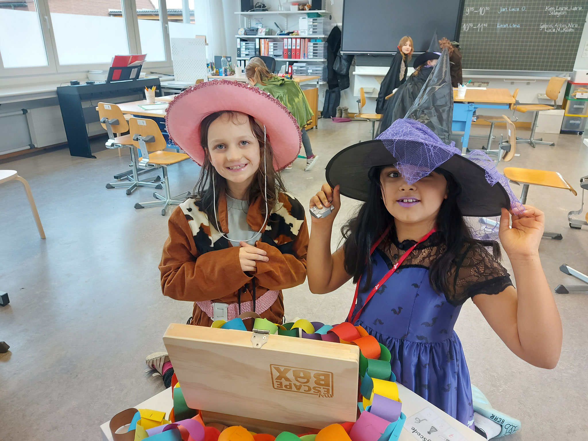 Miteinander richteten die Klassen die verschiedenen Ateliers in der ersten Lektion ein. In den Schulfamilien gab es ein Foto und die Standorte der Ateliers konnten besucht werden. Danach startete der Atelierbetrieb wie Lotto, Wühlkiste, Disco, Armbrustschiessen, Bobbycar-Rennen, Montagsmaler, Kuchen- und Getränkebar, Büchsenwerfen, Schoggispiel, Escape-Rätsel und Schminken. Süsse Preise gab es zu gewinnen.