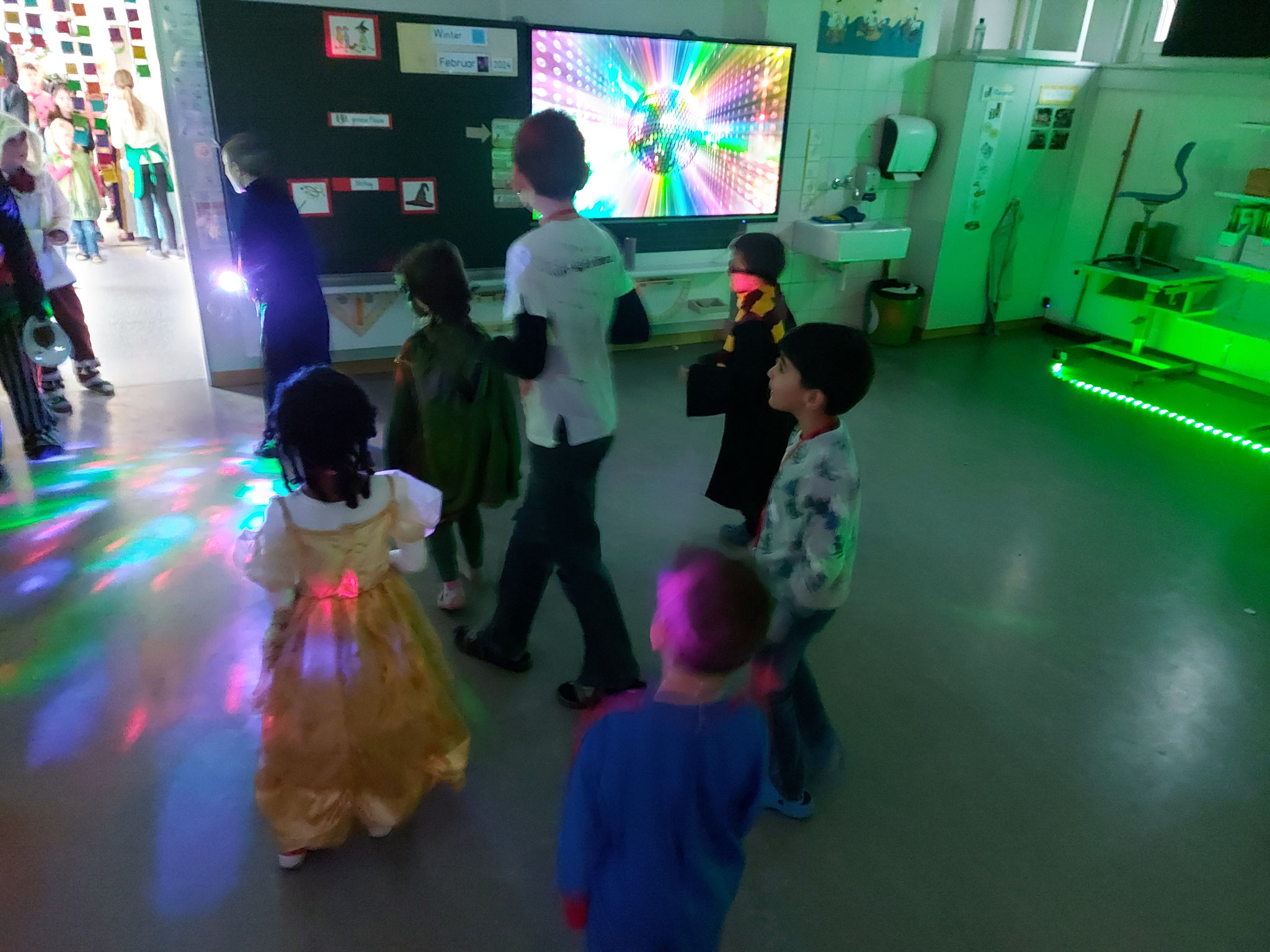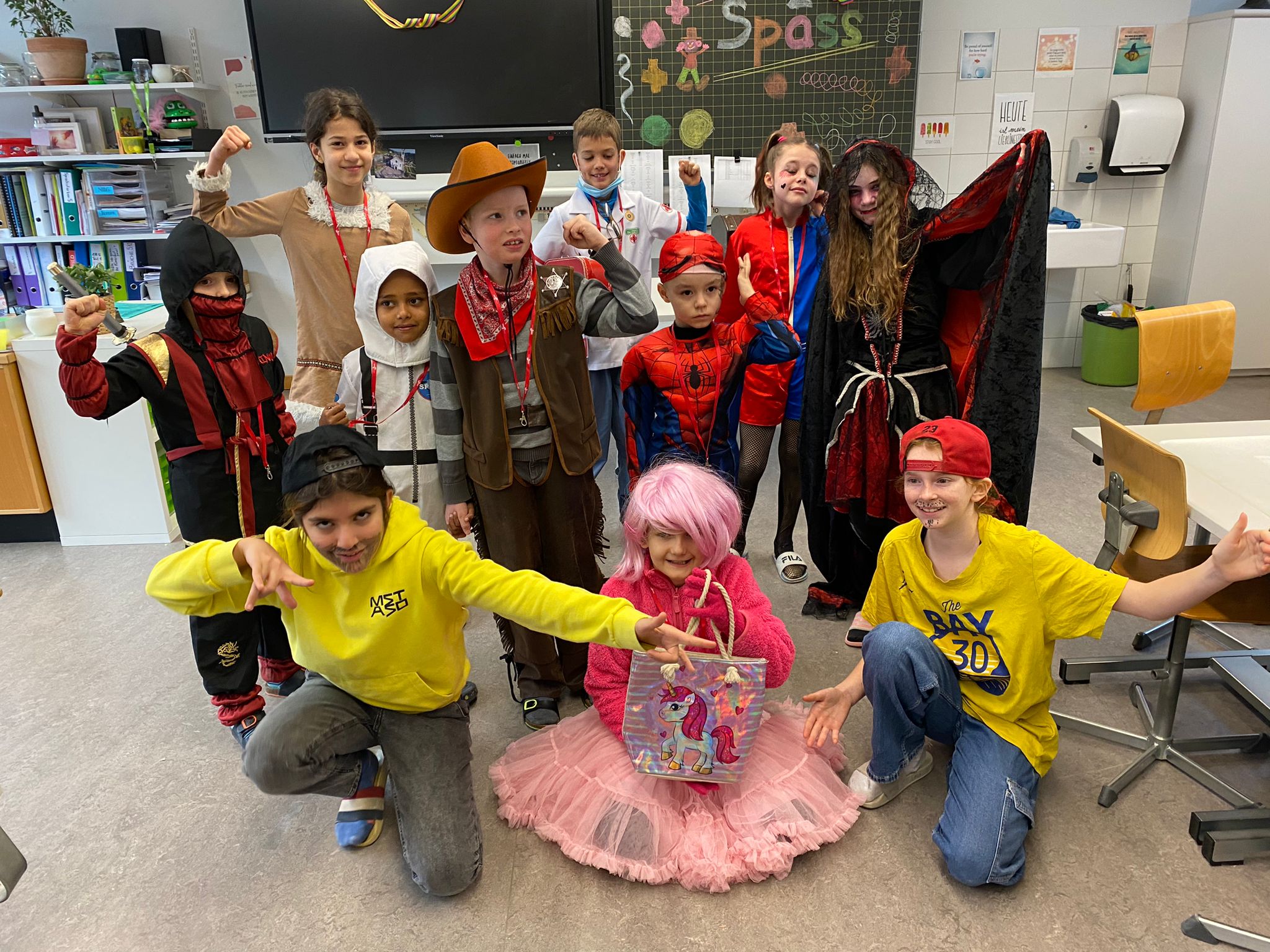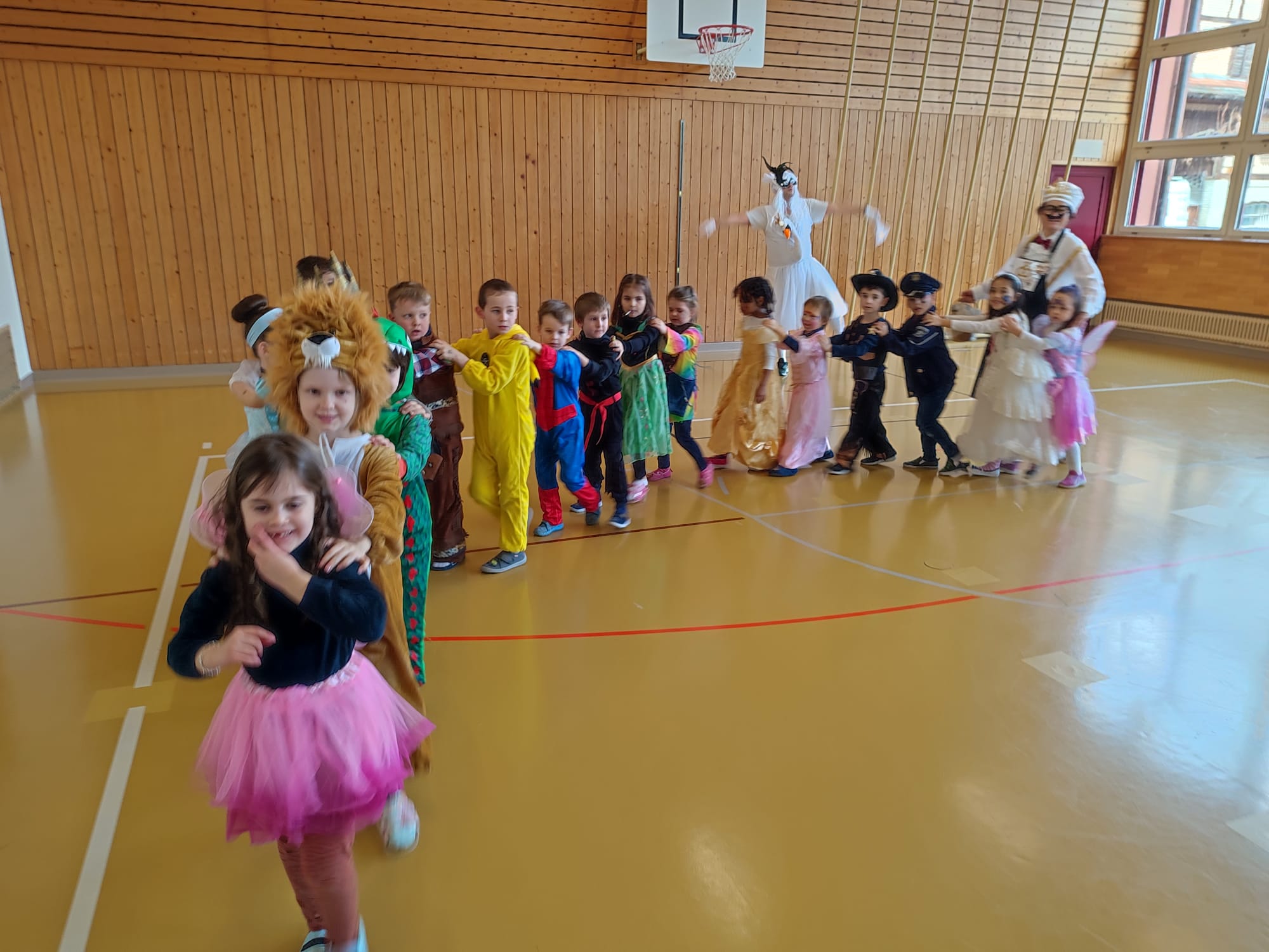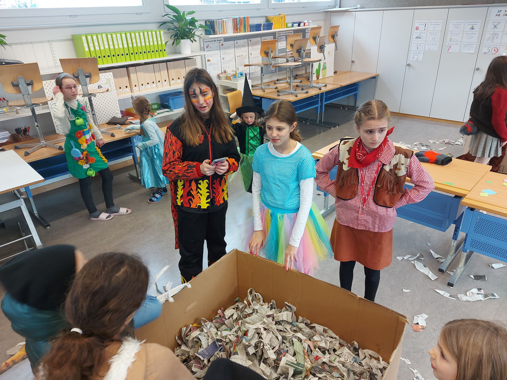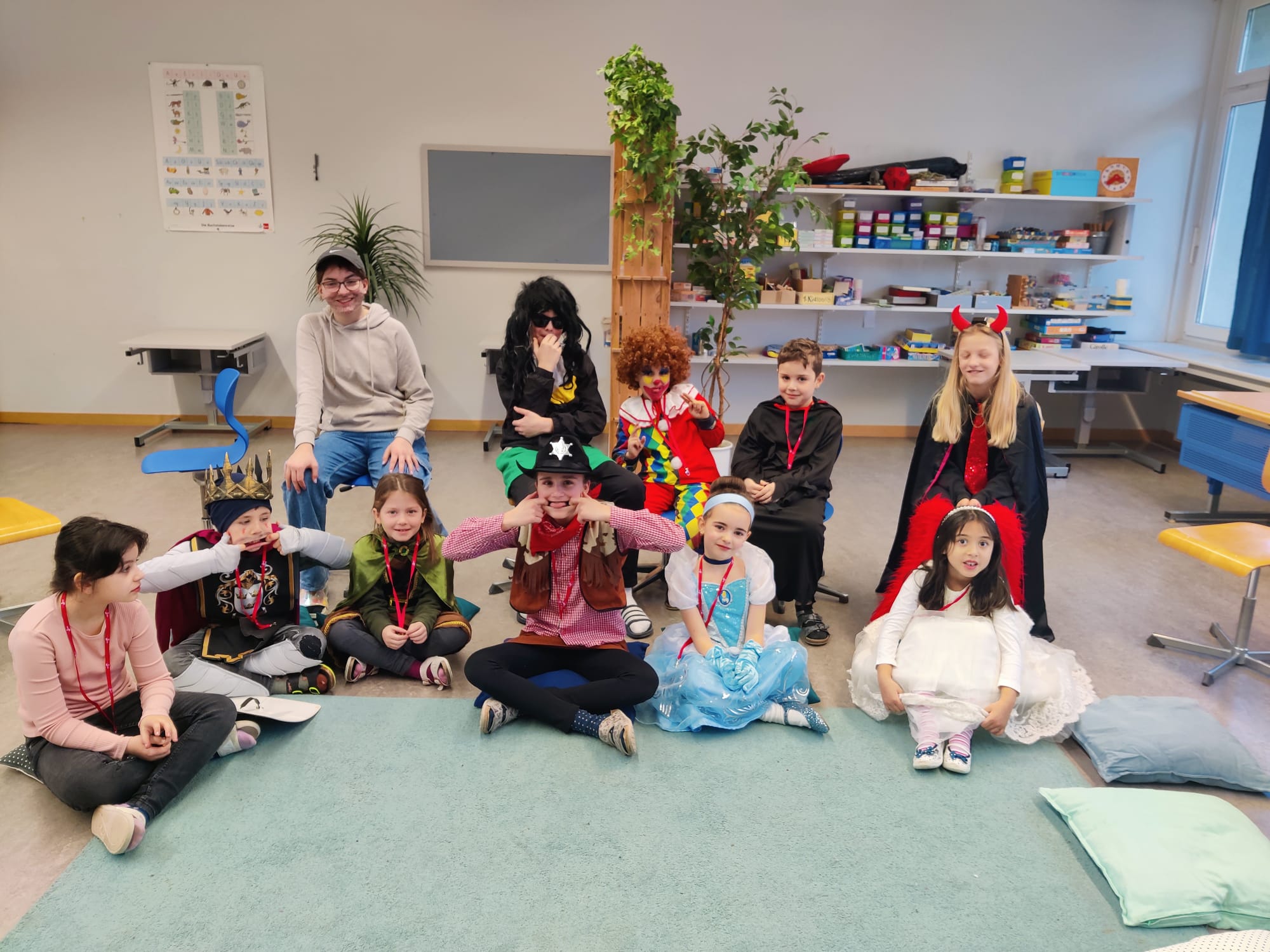 Zum Abschluss sangen alle in der Turnhalle das Schulfamilienlied, tanzten den Macarena und schlossen sich zum Lied "Schwan" zu einer Klassen-Polonaise zusammen. Nach dem Aufräumen gab es Wienerli und Brot mit Ketchup, Senf oder Mayonnaise. Das Mittagessen fand in den Klassen statt, so blieb auch noch Zeit, Feedback zur Schulfasnacht zu geben, um dann verdient in die Ferien zu gehen.