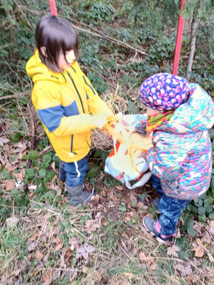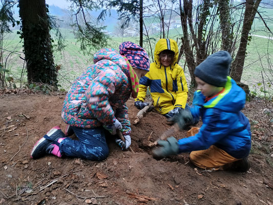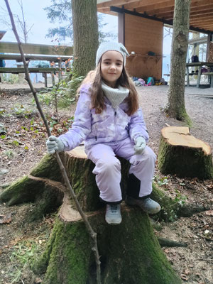 Bei wolkenverhangenem Himmel sind wir am Mittwochmorgen Richtung Waldplatz gelaufen. Heute sollte etwas ganz Besonderes passieren. Es wurde gemunkelt, dass bei uns im Wald ein Schatz versteckt wurde. Nachdem sich alle beim Klettern, Höhlen buddeln und Fangis spielen ausgetobt hatten, haben wir gemeinsam Znüni gegessen. Um uns warm zu halten haben wir heissen Punsch vom Lagerfeuer getrunken und unsere Würste grilliert. Gut gestärkt haben wir uns in zwei Gruppen eingeteilt und mit Hilfe von Frau Wallimann und Frau Teufer haben wir uns auf die Suche nach den verlorenen Vorräten von Toni dem Eichhörnchen gemacht. Es mussten viele Rätsel gelöst werden und mit jeder erfolgreich gefundenen Lösung, kamen wir dem Schatz ein Stückchen näher. Mit dem gefundenen Code konnten wir schlussendlich die Schatztruhe öffnen. Für unsere harte Arbeit wurden wir mit etwa Süssem belohnt und zufrieden haben wir uns wieder auf den Weg nach Hause gemacht.