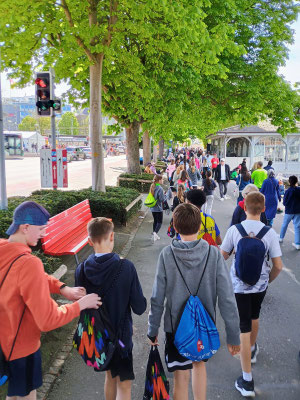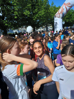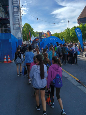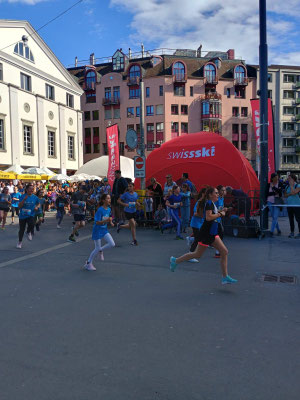 Am 27. April (Samstag) trafen wir – Mädchen und Jungs aus der 5. Und 6. Klasse Menznau -uns beim Bahnhof, um gemeinsam mit Frau Frank und Frau Bühlmann nach Luzern zum Stadtlauf zu fahren. Die Fahrt dauerte nicht lange und wir hatten sehr viel Spass mit unseren Freunden. Schon traf der Zug in Luzern ein. Wir holten unseren Sack und unsere T-Shirts ab und gingen zum Ziel damit wir schauen konnten, wo wir uns treffen. Allerdings ging es dann schon für die reine Mädchen Gruppe zum Start. Kurze Zeit darauf war die gemischte Gruppe dran. Bei uns beiden zählten wir den Countdown runter und rannten los. Von beiden Seiten her feuerte uns Publikum entgegen. Mitte des Rennens gab es ein Becher Wasser. Schon waren wir am Ziel und haben eine Medaille und ein Päckchen mit Nüssen entgegengenommen. Wir trafen unsere Gruppe und machten ein Foto, als alle da waren. Dann gingen wir über die Brücke, zurück zum Bahnhof. Da wir noch Zeit hatten gingen ein paar in den McDonalds und andere in Lollipop Shop. Dann mussten wir wieder mit dem Zug nach Menznau zurückfahren. Auch diese Fahrt ging schnell vorbei. Leider war der Tag auch schon herum und wir gingen nach Hause. Es hat uns sehr viel Spass gemacht. Wir danken für diesen wundervollen Tag.