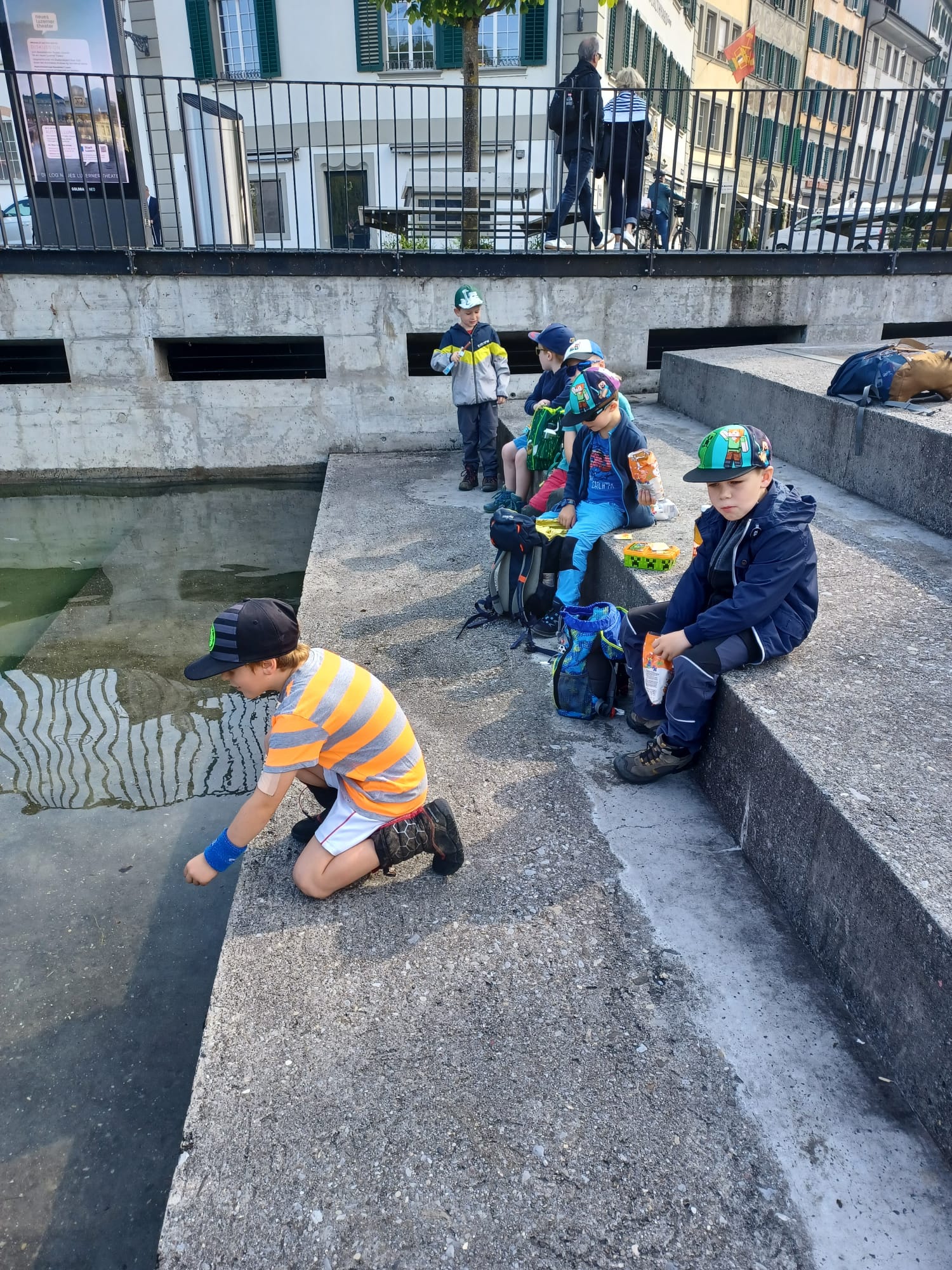 Bei schönstem Wetter reisten wir, die Basisstufe Geiss, nach Luzern. Nach eine Znünipuase auf dem Mühlenplatz machten wir uns auf den Weg zum Gütsch, wo wir mit Bräteln und Spielen unsere Mittagspause verbringen konnten. Das Spielen am Bach und der Kletterbaum haben riesig viel Spass gemacht.