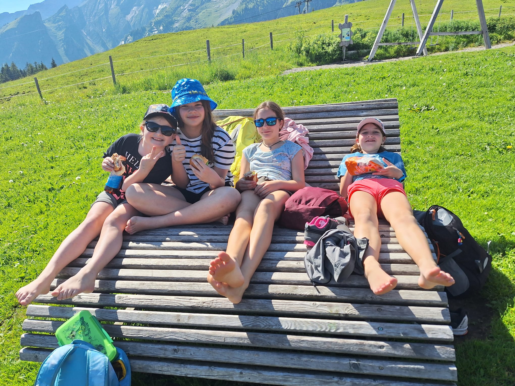 Die Schulreise bringt uns hoch in die Luft. Wir schweben mit den Gondeli vom Sörenberg in die Rossweid hinauf und genießen die Aussicht auf alle Berge rundherum.
