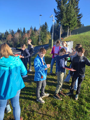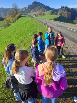Die 5./6. Klasse löst viele Aufgaben zum Thema Schweiz draussen: Windrichtung bestimmen, Karten lesen, Kantone und Berge kennen lernen. Bei diesem wunderbaren Herbstwetter ist das Arbeiten draussen ein Genuss! Der grandiose Rundblick auf die ganze Schweiz macht den Geografieunterricht zu einem Erlebnis. Die Klasse besucht die Gutenegg und den Schwingplatz für die Forscherarbeit im Feld.