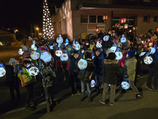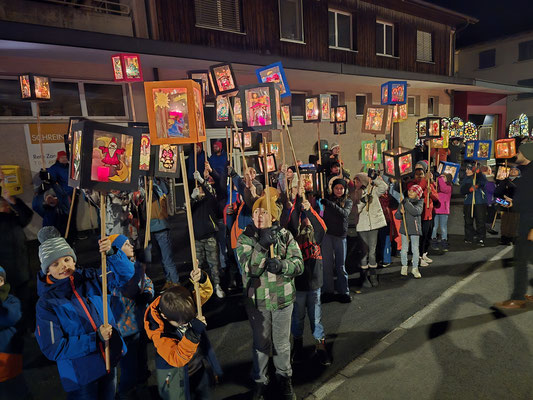 Pünktlich um 19.15 Uhr wurden die Strassenlaternen ausgeschaltet und der Einzug mit dem Samichlaus in die Kirche Menznau konnte starten. Begleitet wurde der Samichlaus und sein Gefolge von Treicheln, Fackeln, Laternen und Iffelen.