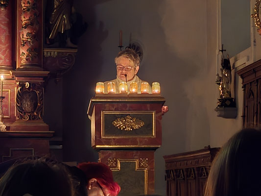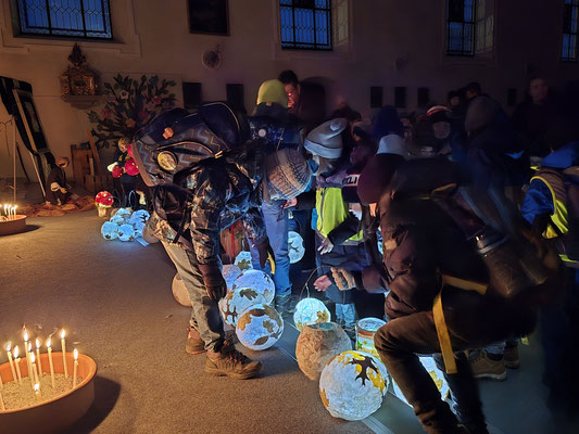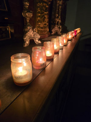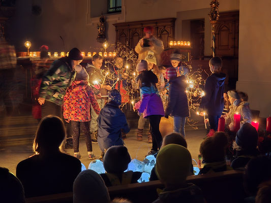 Die Kirche ist nur durch Kerzenlicht erleuchtet. Es wird gesungen, gedankt und gebetet. Die Geschichte der Lumina zieht die Kinder in Menznau zusätzlich in den Bann:
