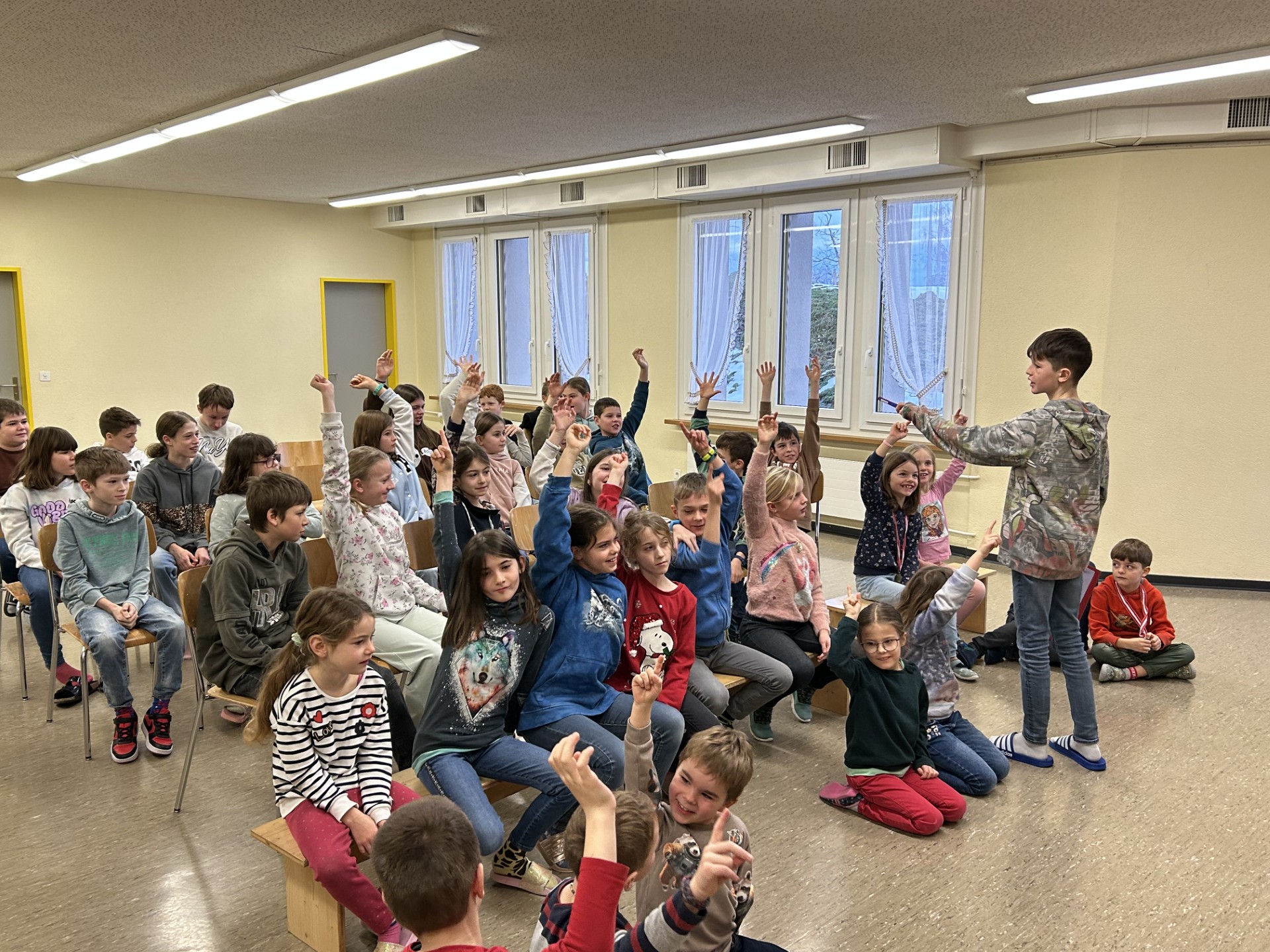 Die Fasnacht und der von den Schülerinnen und Schülern gewünschte Schulhausausflug (Basisstufe bis 6. Klasse) waren die Haupthemen der Vollversammlung vom 6. Januar. Zudem durften sich die Kinder überlegen, was sie mit den 100 Fr. machen möchten, die sie von «schweiz-bewegt» erhalten haben.