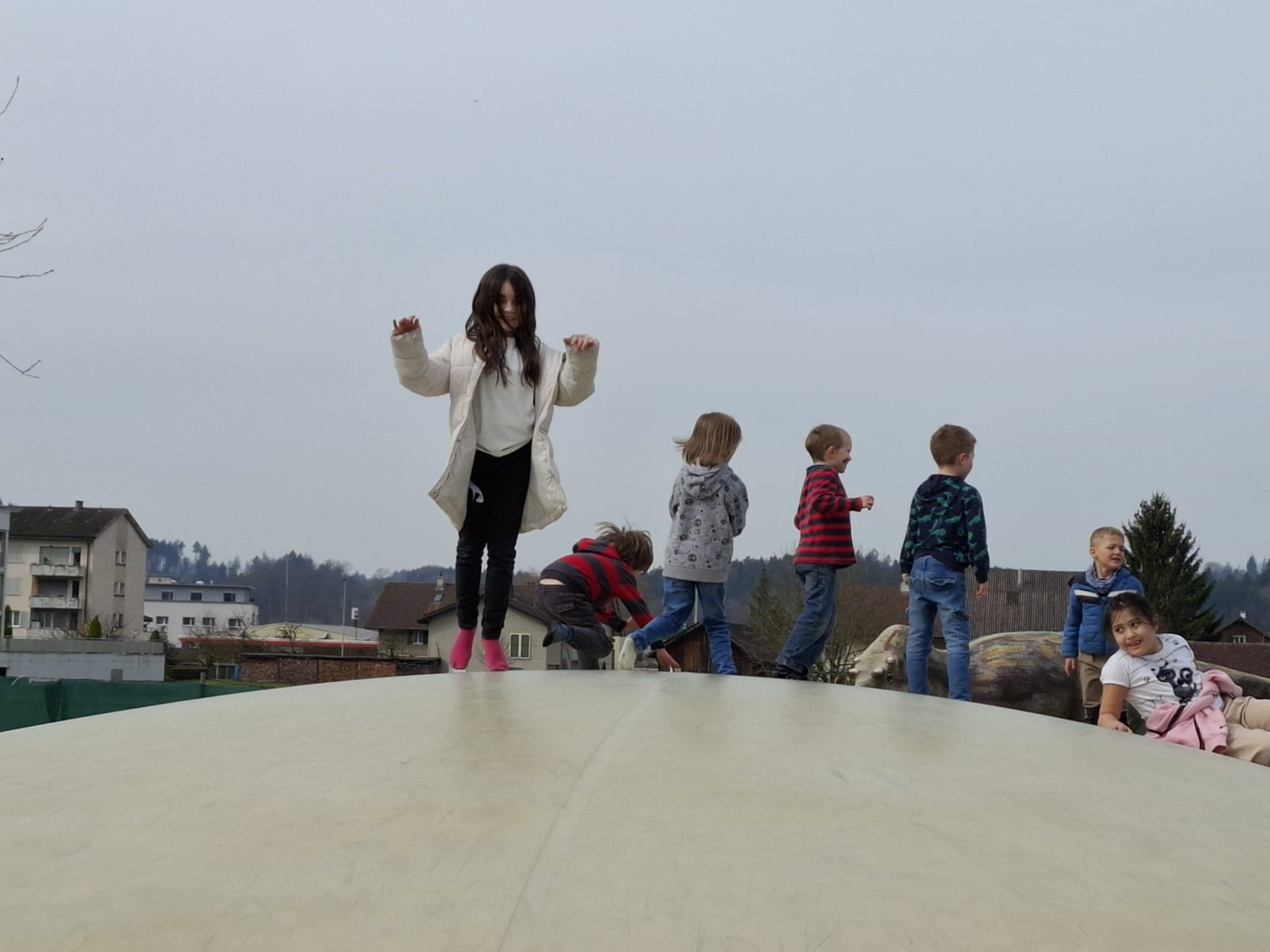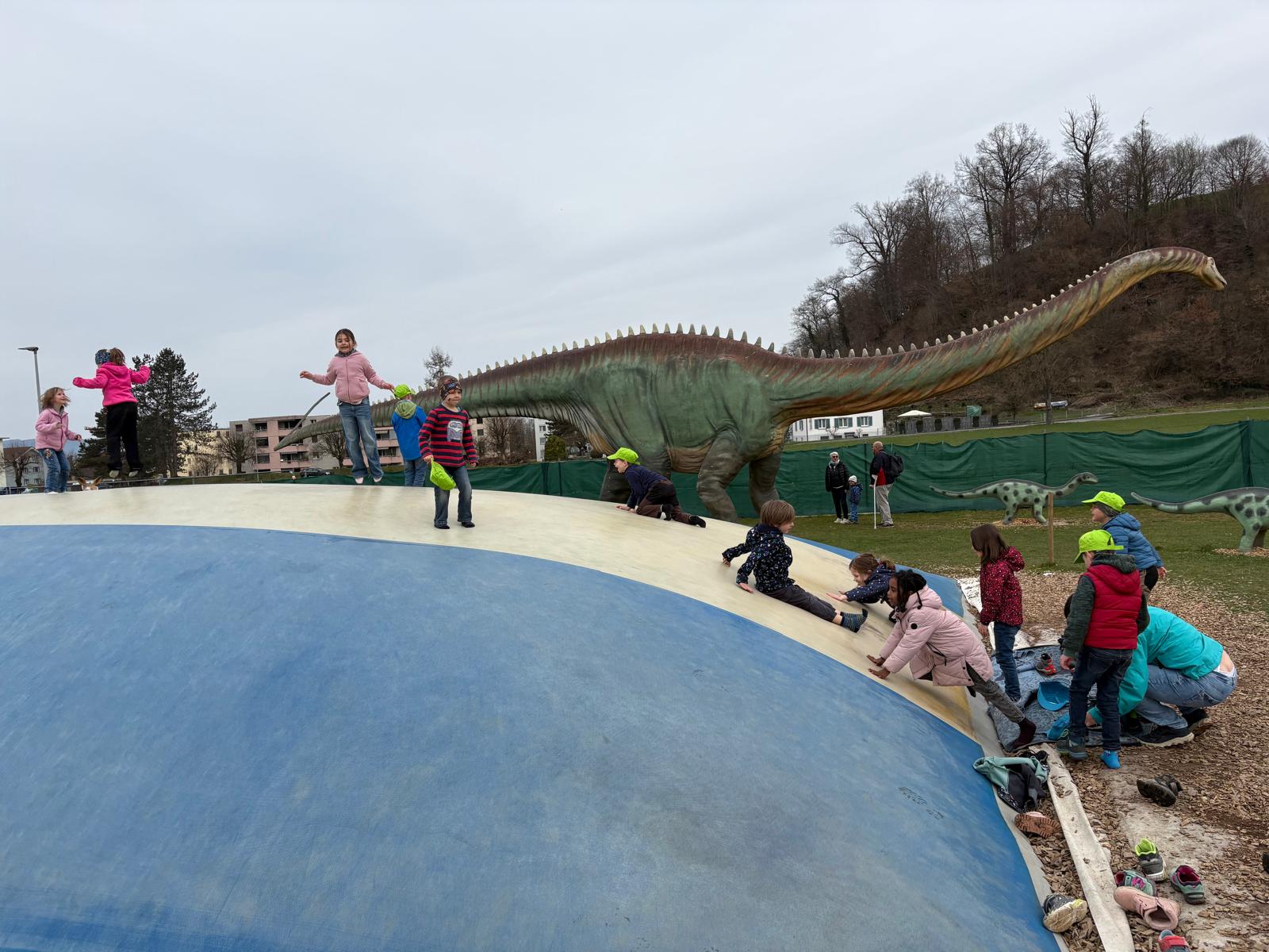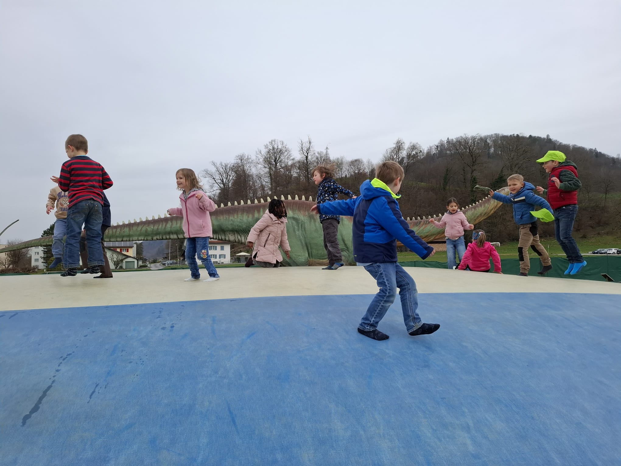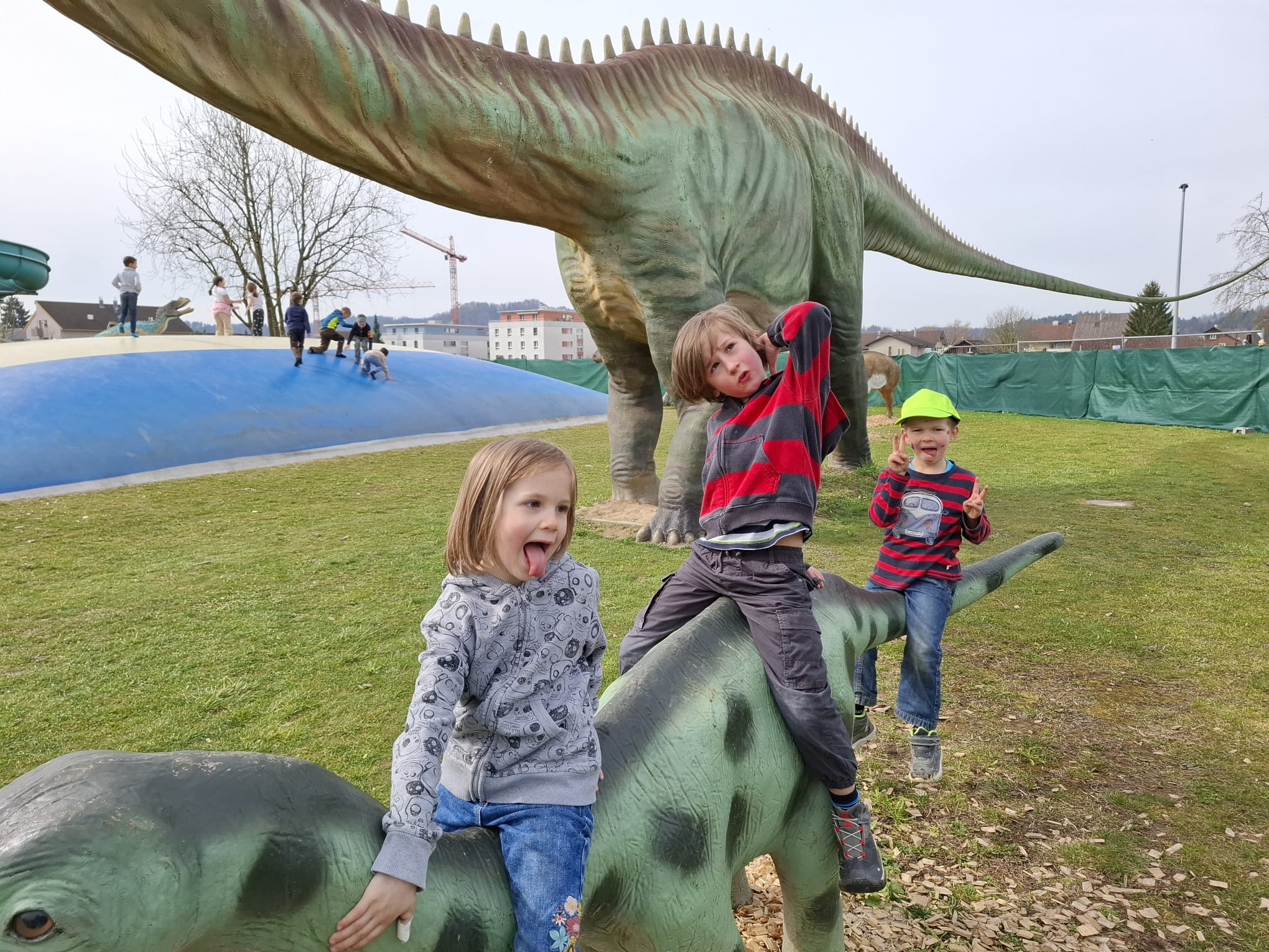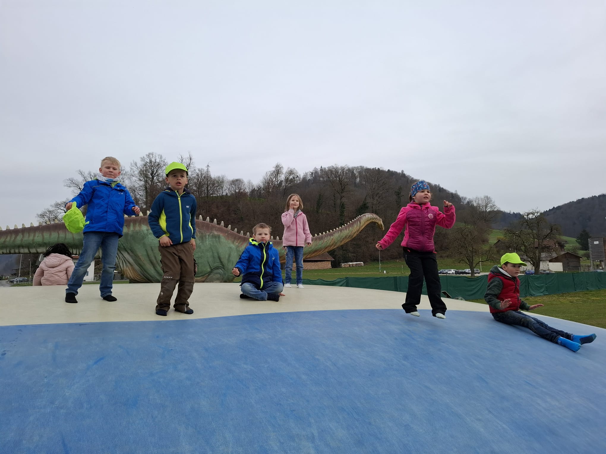 Am 21. März, zum Frühlingsgeburtstag, ging der Kindergarten 1 auf die Kindergarten-Reise. Wir starteten fröhlich und gut ausgerüstet mit dem Zug Richtung Reiden. Dort besuchten wir in der Badi die Dinosaurier... Es gab viel zu staunen. Die Hüpfburg ist uns in besonderer Erinnerung geblieben. Ein halbstündiger Fussmarsch brachte uns unserem Mittagsziel näher. Der Wald Spielplatz in Wikon. Wir verbrachten einen Tag wie im Märchen, alle sind gesund, müde und gut gelaunt zurückgekehrt.
