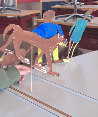 Jede Schülerin und jeder Schüler wählt aus dem Musiktheater eine Figur aus, lernt das entsprechende Instrument kennen, gestaltet die Figur mit Karton und Farbe.