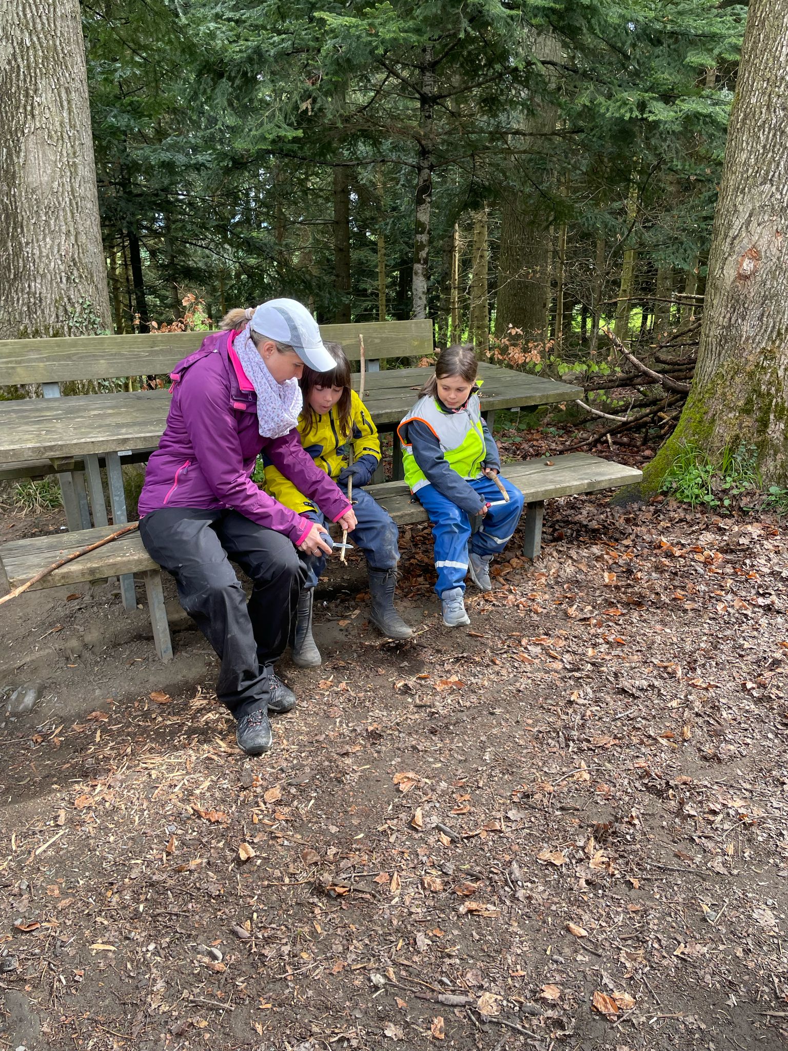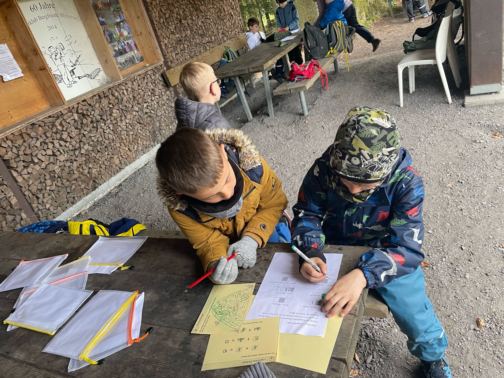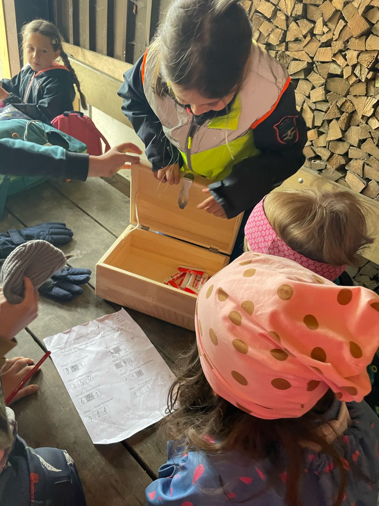 Am Montag, 14. April stand für die 1./2. Klasse a wieder ein Waldmorgen auf dem Programm. Es wurden in Gruppen viele verschieden Rätsel, welche im Wald versteckt waren, zum Thema Frühling und dessen Pflanzen und Tiere beantwortet. Bei jedem Rätsel ergab die Lösung ein Zahlencode, welcher festgehalten wurde. Am Schluss mussten dann einzelne Zahlen der Codes miteinander in Verbindung gebracht werden und mithilfe der Kombinatorik der passende Code für die Schatztruhe gefunden werden. Bei 5 verschiedenen Zahlen war das gar nicht so einfach...