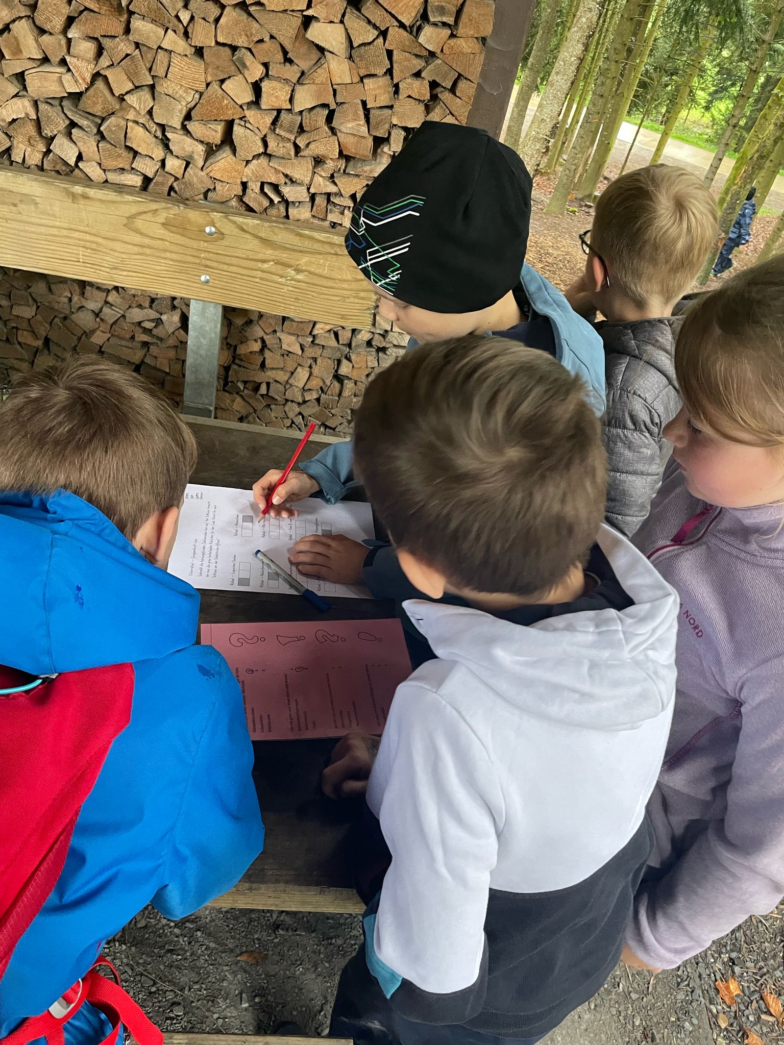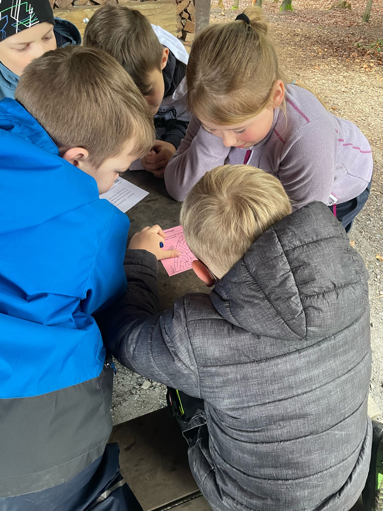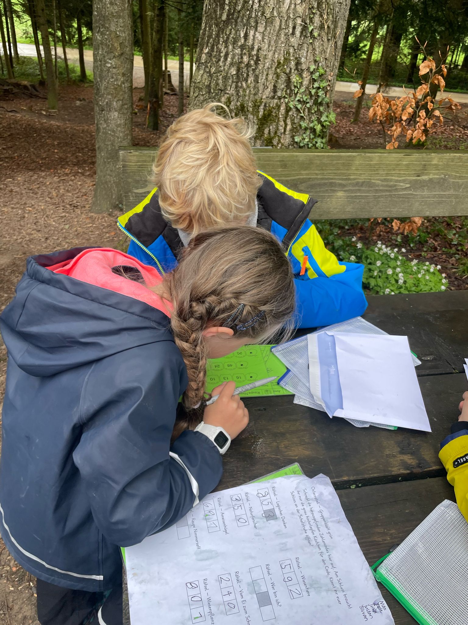 Am Montag, 14. April stand für die 1./2. Klasse a wieder ein Waldmorgen auf dem Programm. Es wurden in Gruppen viele verschieden Rätsel, welche im Wald versteckt waren, zum Thema Frühling und dessen Pflanzen und Tiere beantwortet. Bei jedem Rätsel ergab die Lösung ein Zahlencode, welcher festgehalten wurde. Am Schluss mussten dann einzelne Zahlen der Codes miteinander in Verbindung gebracht werden und mithilfe der Kombinatorik der passende Code für die Schatztruhe gefunden werden. Bei 5 verschiedenen Zahlen war das gar nicht so einfach...