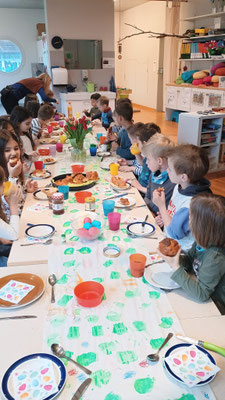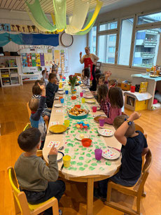 17. April 2025 Osterzmorge im Kindergarten 1 Am letzten Tag vor den Ferien wurde im Kindergarten gefrühstückt. Alle Kinder haben etwas dazu beigetragen. Es war eine fröhliche Stimmung mit Eiertütschen und Schokolade trinken... Bericht Karin Riedweg tagPlaceholderTags: