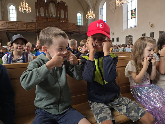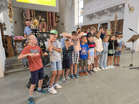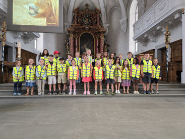 Zum Abschluss der Feier wurden die neuen Kinder der ersten Klasse mit Leuchtwesten ausgestattet. Sie wurden herzlich mit Applaus in die Primarschulgemeinschaft aufgenommen. Dieser feierliche Moment symbolisierte den Beginn eines neuen Kapitels in ihrem schulischen Leben und die Integration in die Schulgemeinschaft. Beim Verlassen der Kirche erhielten die Kinder und Erwachsenen ein Stück Käse. Gestärkt ging es danach in den ersten Unterrichtsmorgen.