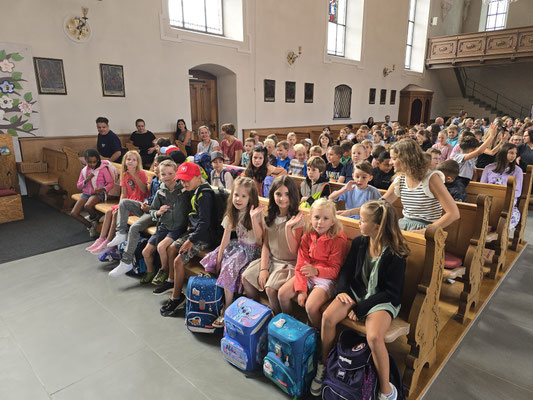 Die feierliche Schuleröffnung in der Kirche fand am 18.08.2025 statt, die von Ruth Maria Langner und Dan Moldovan mit viel Enthusiasmus geleitet wurde. Passend zum diesjährigen Schuljahresmotto „Von A-Z... Kultur schmeckt“ begrüssten sie die Kinder und schufen eine herzliche Atmosphäre.