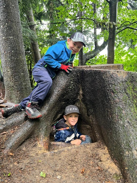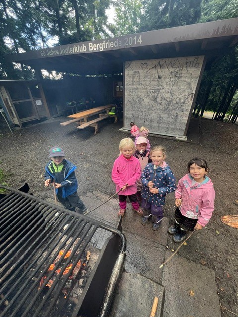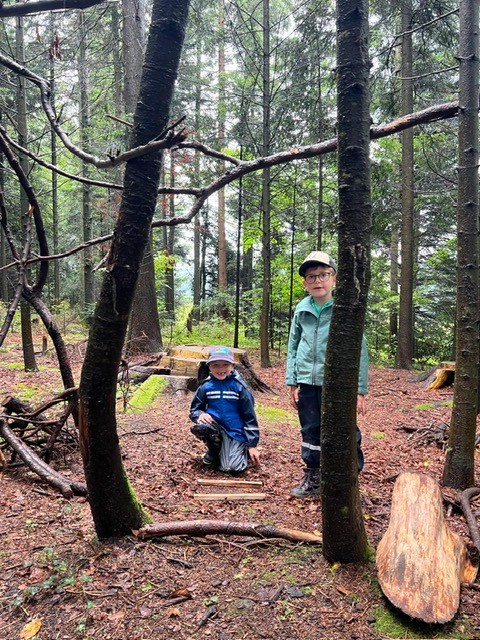 Am Freitagmorgen, 05.09.25, ging der Kindergarten 2 das erste Mal in diesem Schuljahr in den Wald. Wir hatten Glück und auf dem Weg in den Gassmeshus Wald hat es nicht geregnet. Oben angekommen haben wir die Regeln nochmals besprochen und uns mit unserem Waldlied auf den Waldmorgen eingestimmt. Danach konnten die Kinder bereits im Wald spielen, erkunden und den Wald entdecken. Eine Gruppe von Kindern konnte gemeinsam das Feuer für unser Znüni machen. Nach dem Znüniessen haben wir gemeinsam Marshmallow grilliert und gegessen. Pünktlich um 11 Uhr machten wir uns bereits wieder auf den Weg zurück ins Dorf.