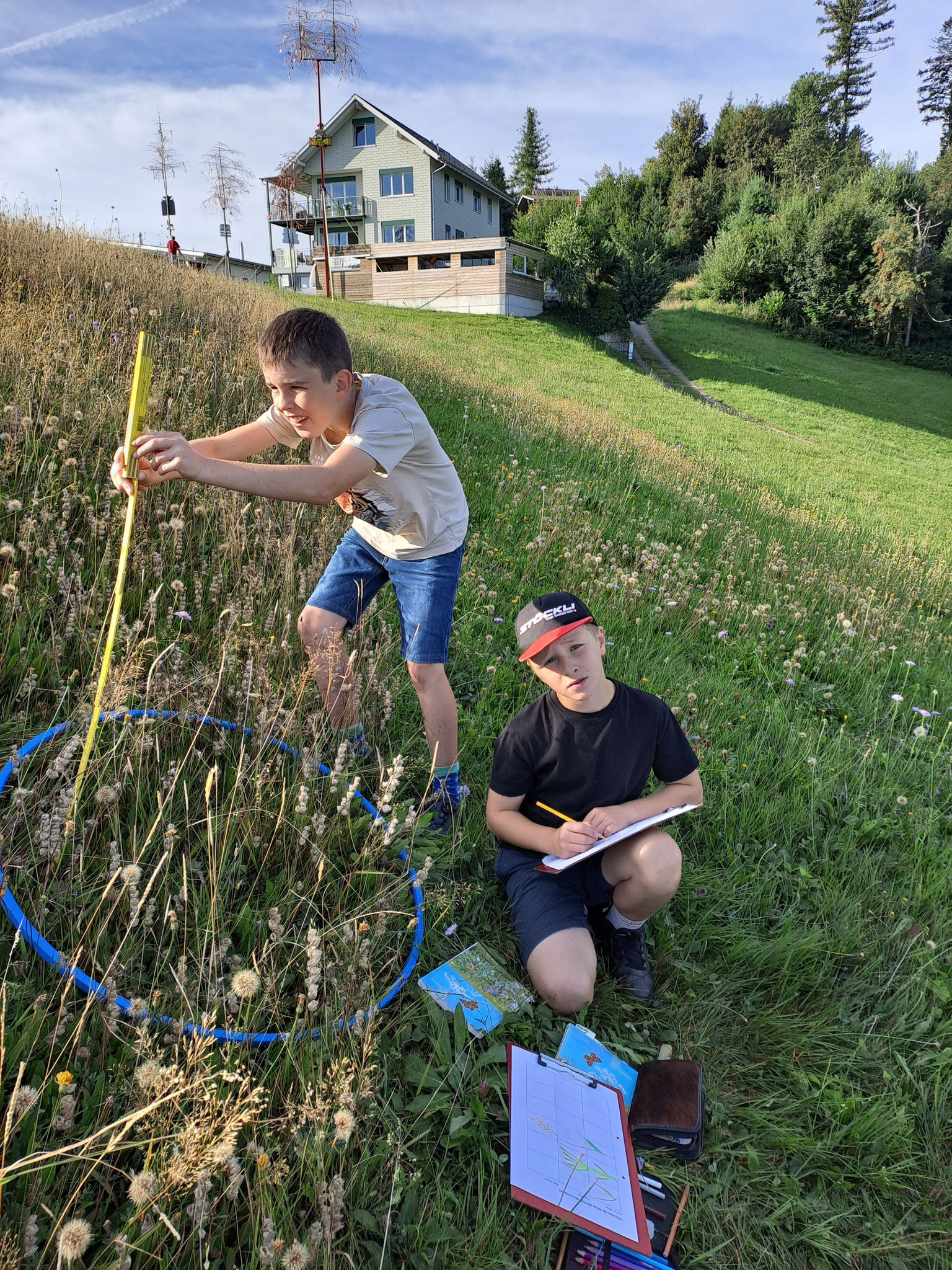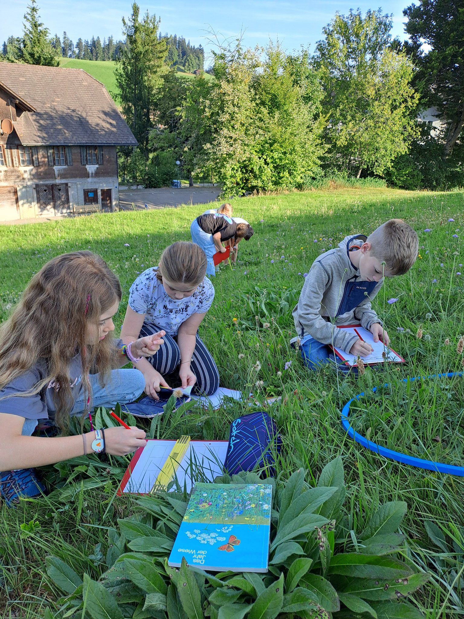 Die Beobachtungen auf der Wiese zeigt die schöne Vielfalt der Wiesenblumen. Die Schülerinnen und Schüler erkennen die hohe Biodiversität der Bergwiese. Unter dem Boden finden sie allerlei Getier: Insekten, Schnecken, Spinnen, Krebse. Die Becherlupen sind dazu ein ideales Instrument. Die Schülerinnen und Schüler zeigen einander mit Begeisterung, was sie beobachten. Sie dokumentieren ihre Funde und machen sie den anderen zugänglich.