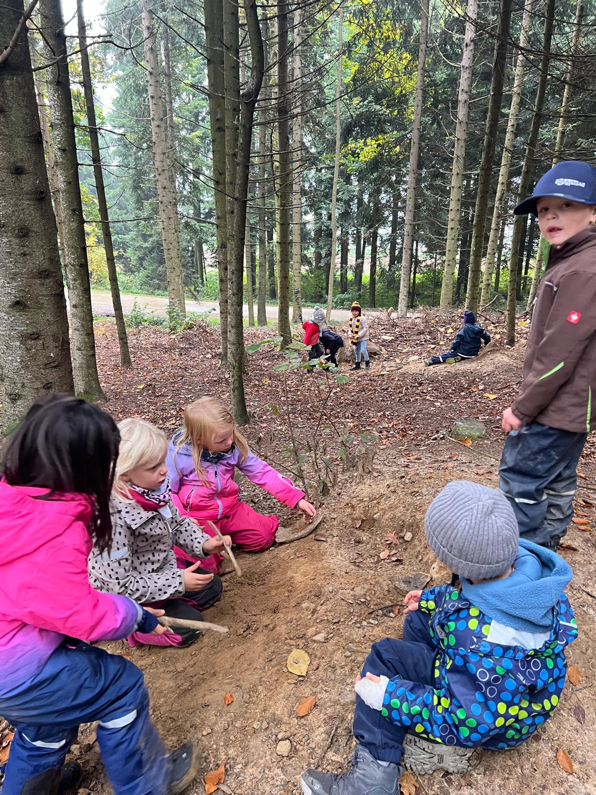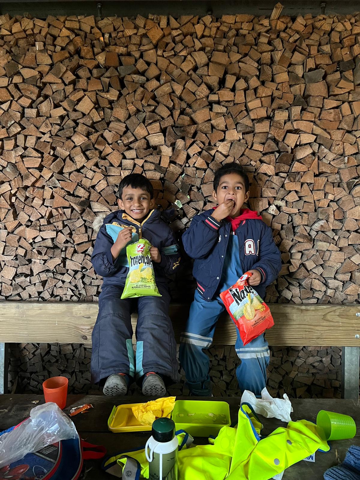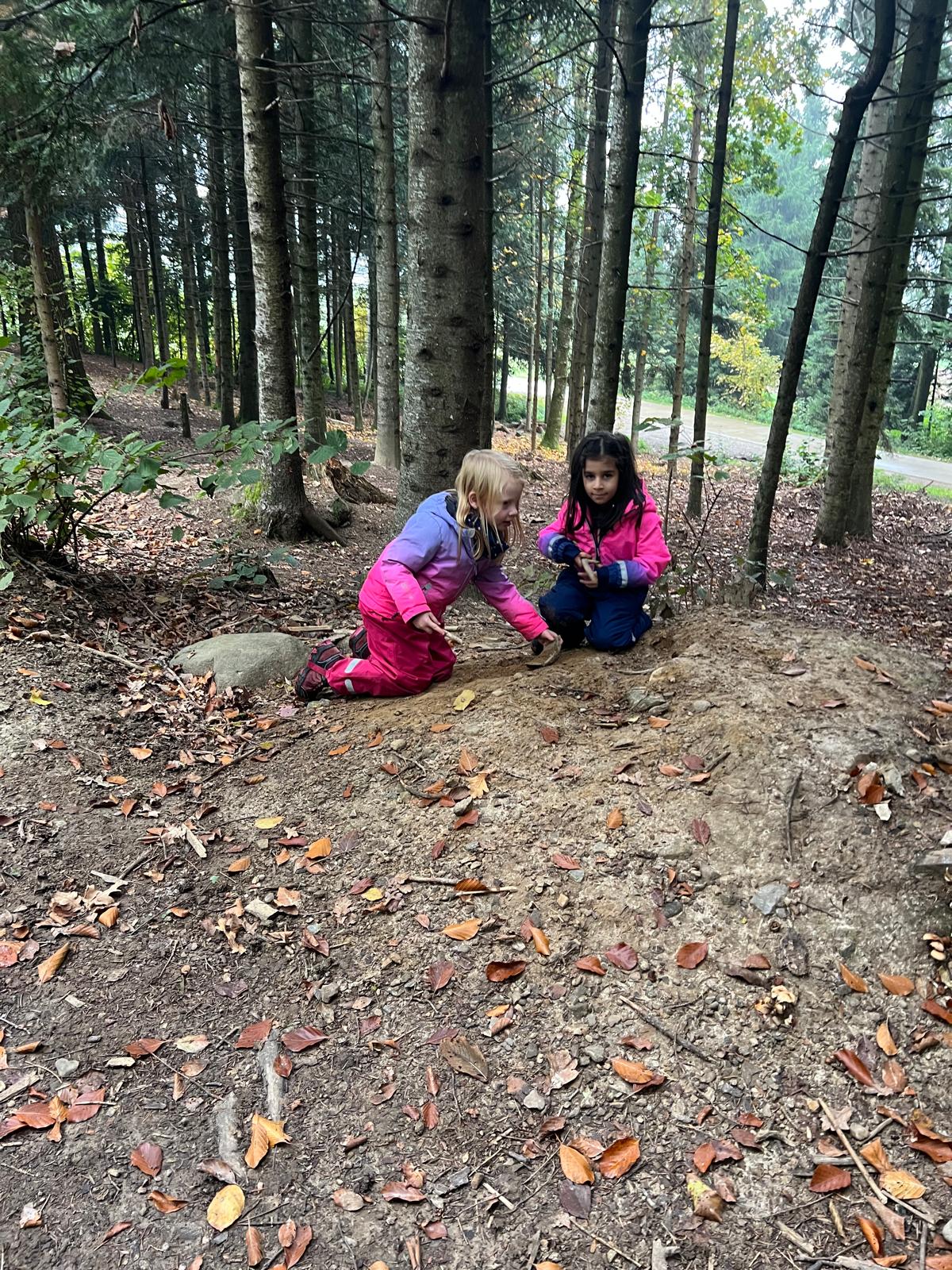 Am Freitagmorgen, 17. Oktober, gingen wir mit dem Kindergarten 2 in den Wald. Zu Beginn konnte gleich eine Gruppe von Kindern das Feuer für das gemeinsame Znüni machen. Sie lernten dabei, wie man Feuer macht und auf was man aufpassen muss beim Umgang mit Feuer. Die anderen Kinder haben verschiedene Waldgegenstände gesucht und dann geordnet. Gemeinsam haben wir die gesammelten Blätter, Rinde, Eicheln, Tannenzapfen und Stecken gezählt und den Ziffern zugeordnet. Danach wurde eine neue Waldhütte gebaut. Zum Znüni gab es zum Aufwärmen Punch und einen Cervelat oder Wurst vom Feuer. Kurz vor 11 Uhr räumten wir auf und gingen gemeinsam wieder ins Dorf.