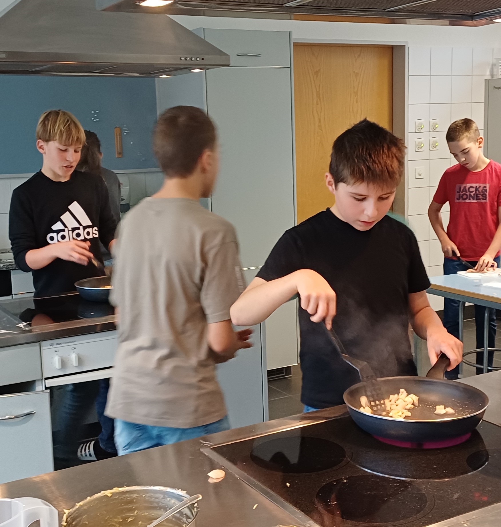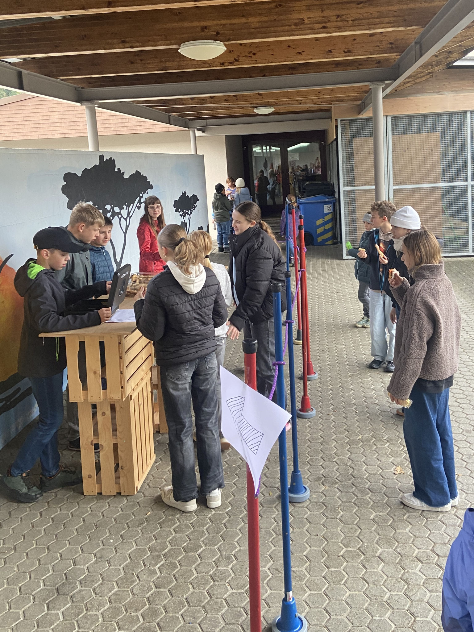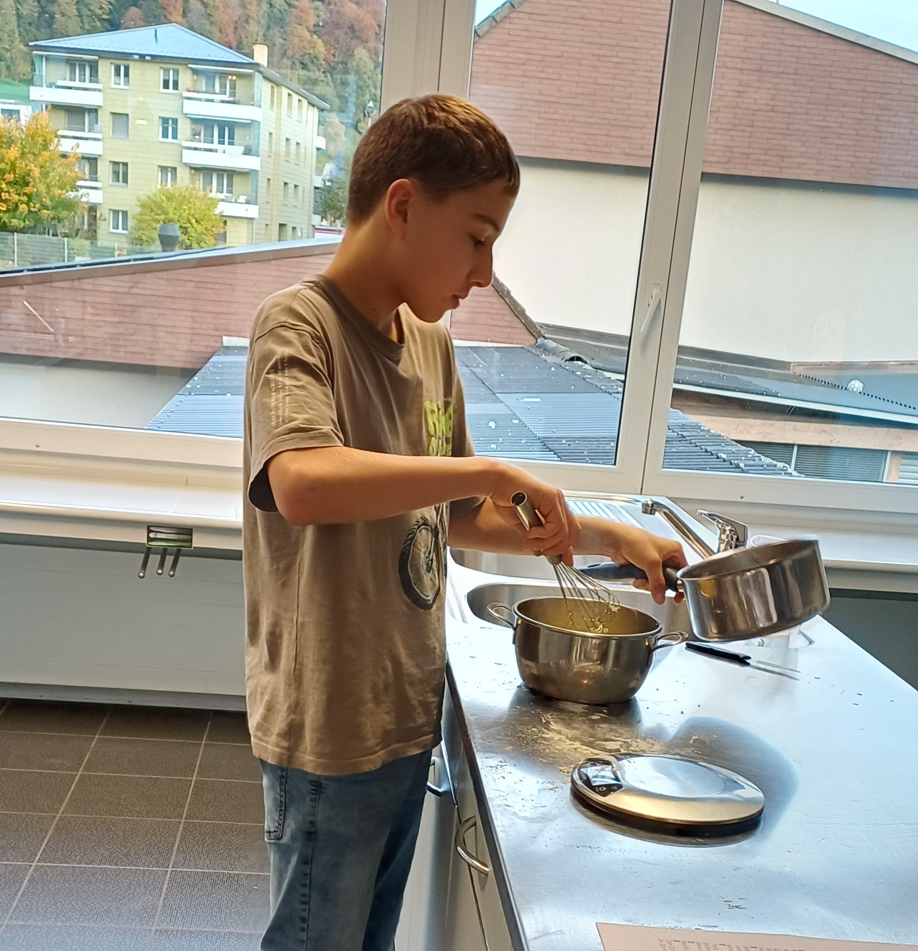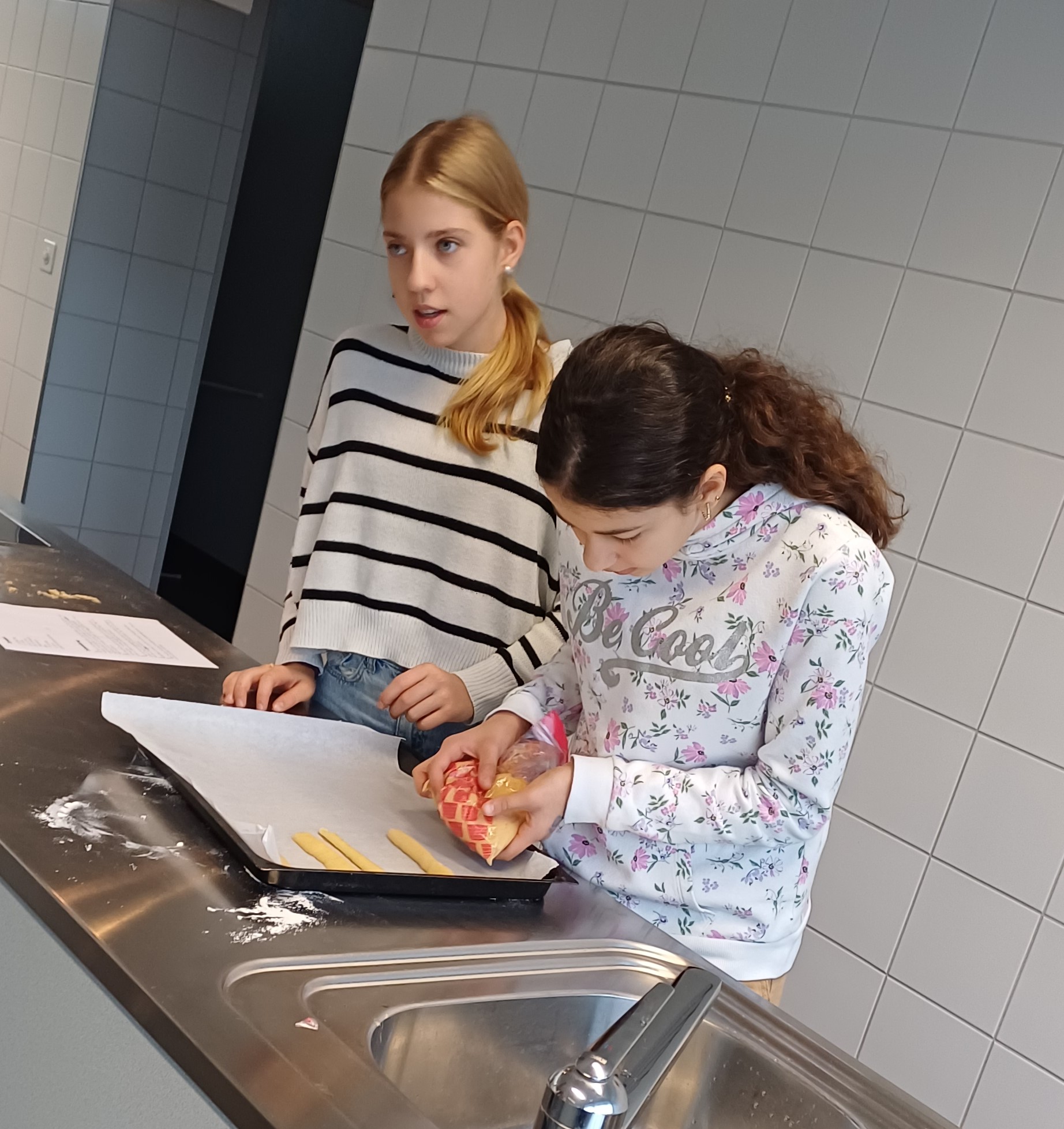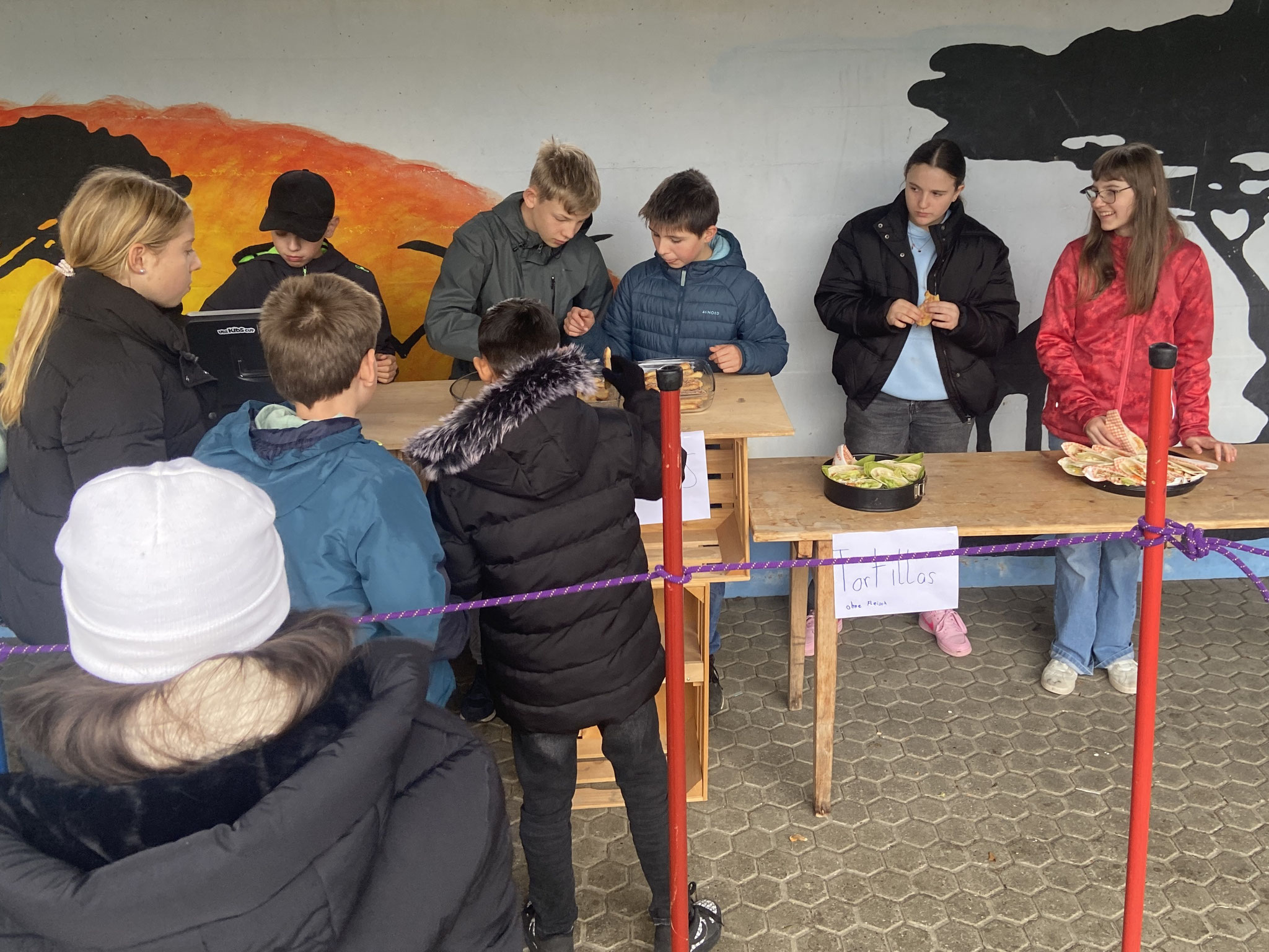 Die 6.Klasse a hatte am 21 und 22 Oktober Znünikiosk. Jeder Klasse wurde ein Land der Welt zugeteilt. Wir haben Spanien bekommen. Wir machten Churros und Tortillas. Die eine Hälfte der Klasse machte einen Teig, füllte diesen dann in Beutel. Der Teig wurde auf dem Blech zu Churros geformt, danach wurden sie gebacken. Die andere Hälfte bereitet die Zutaten für die Tortillas vor. Ein paar Kinder haben das Poulet geschnitten und dann gebraten. Der Rest schnitt die Karotten und den Salat. Am Schluss haben fast alle geholfen die Tortillas zu füllen. Der Verkauf lief super, die Tortillas waren sehr schnell weg.