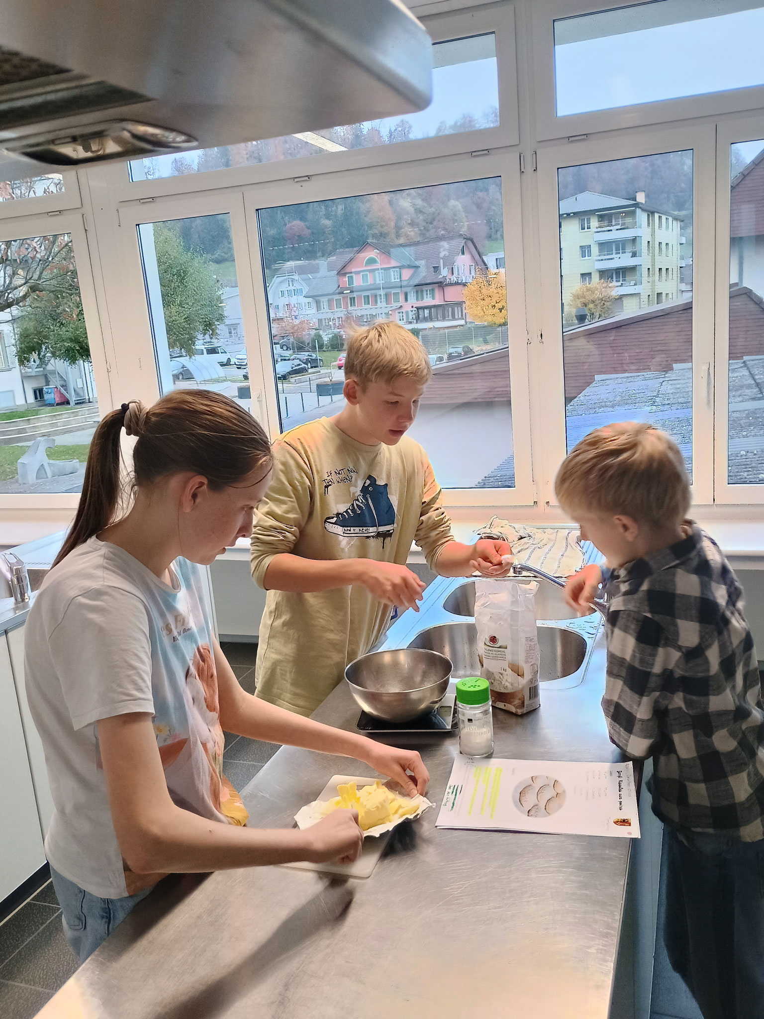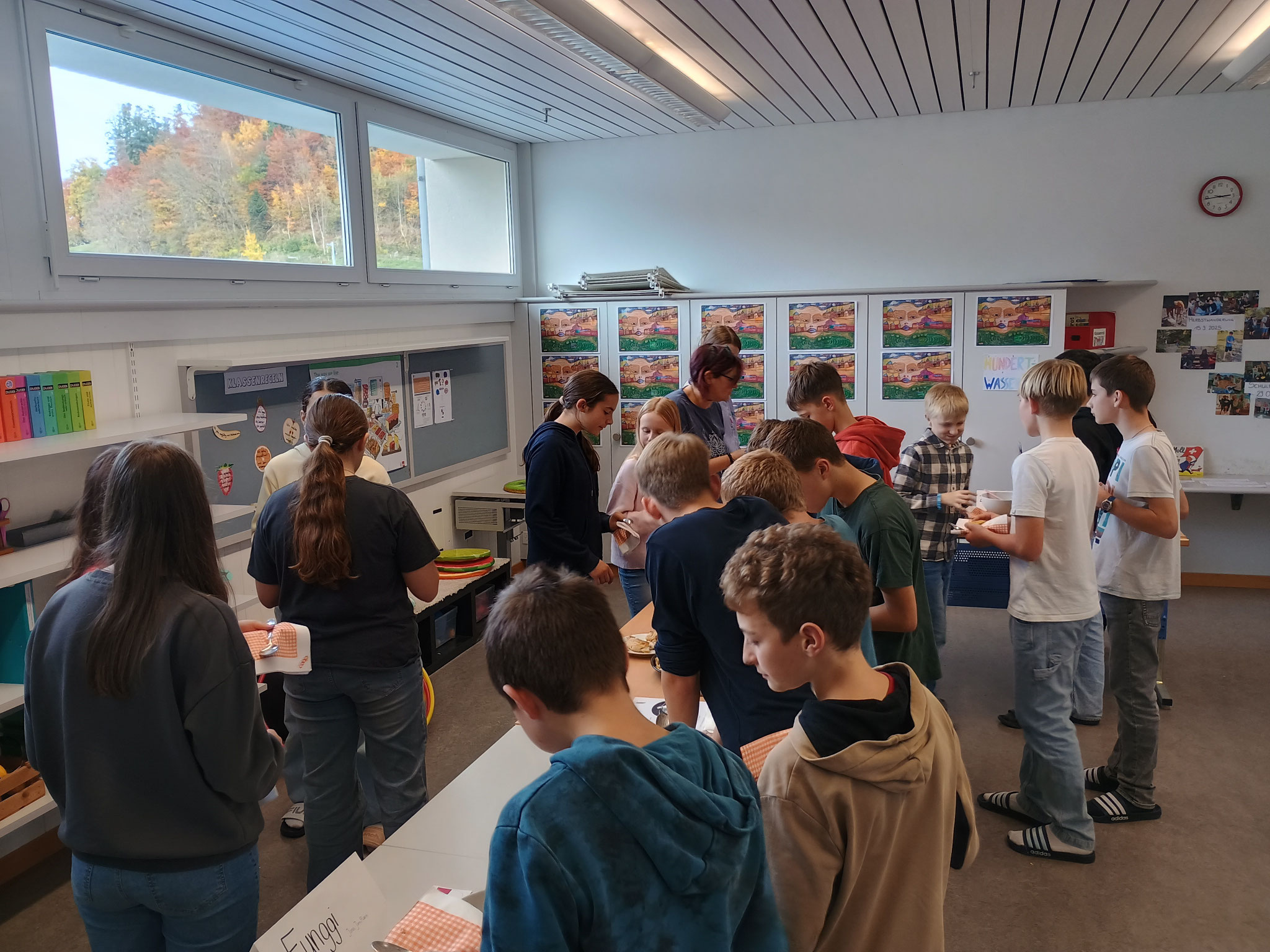 Momentan haben die 6. Klassen das Thema Schweiz im Fach NMG. Am Freitag, 31. Oktober 2025 wurde deshalb bei der 6. Klasse A und B ein Food Festival im Schulzimmer veranstaltet. Die beiden Klassen trafen sich im Schulzimmer von der 6 Klasse A und hatten in zehn Gruppen jeweils zu verschiedenen Kantonen ein typisches Gericht dazu gebacken oder gekocht.
