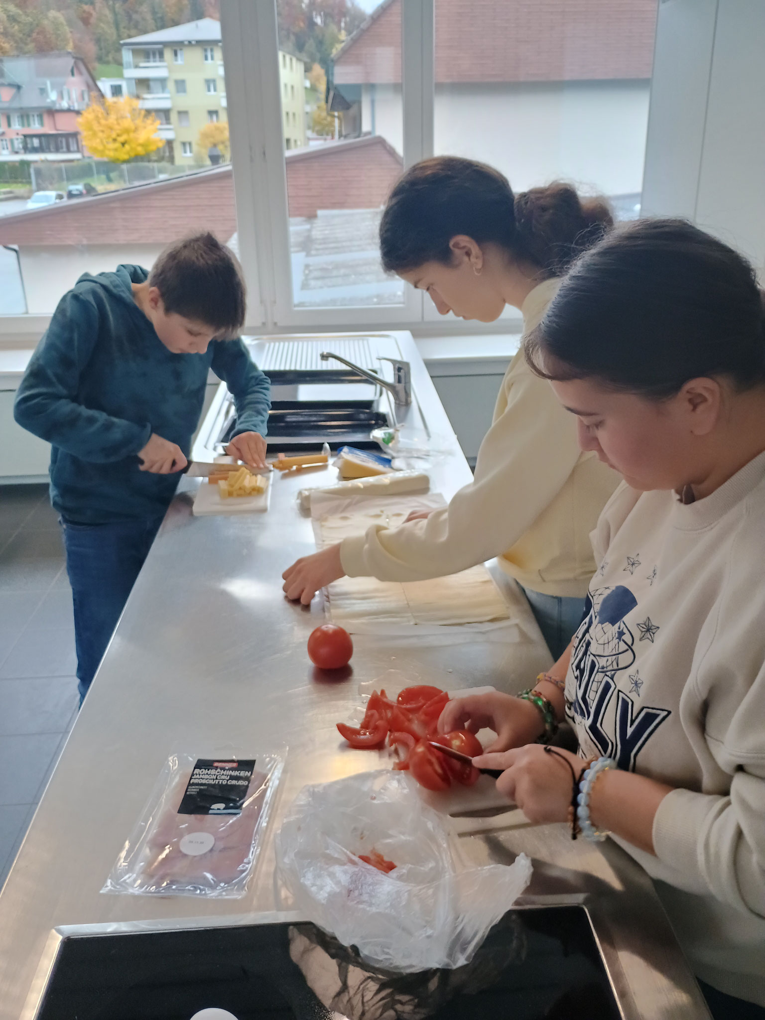 Während dem Herstellen lief nicht immer alles so ganz rund, wie wir es uns vorgestellt haben, aber es hat uns allen Spass gemacht und die Gerichte sind toll und lecker rausgekommen; und dass ist schliesslich die Hauptsache! Wir haben viele gute Erfahrungen gesammelt und erinnern uns gerne an diesen erfolgreichen und spassigen Nachmittag zurück!