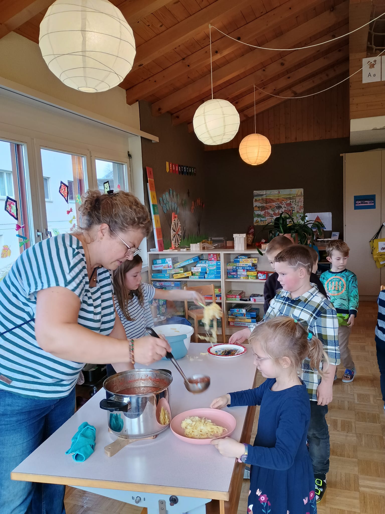 Zum Abschluss haben wir selbst Teigwaren hergestellt, welche wir heute (Freitag, 5.Dezember) beim gemeinsamen Mittagessen geniessen durften. Natürlich durfte auch eine selbst gekochte Bolognese-Sauce und reichlich Reibkäse nicht fehlen.